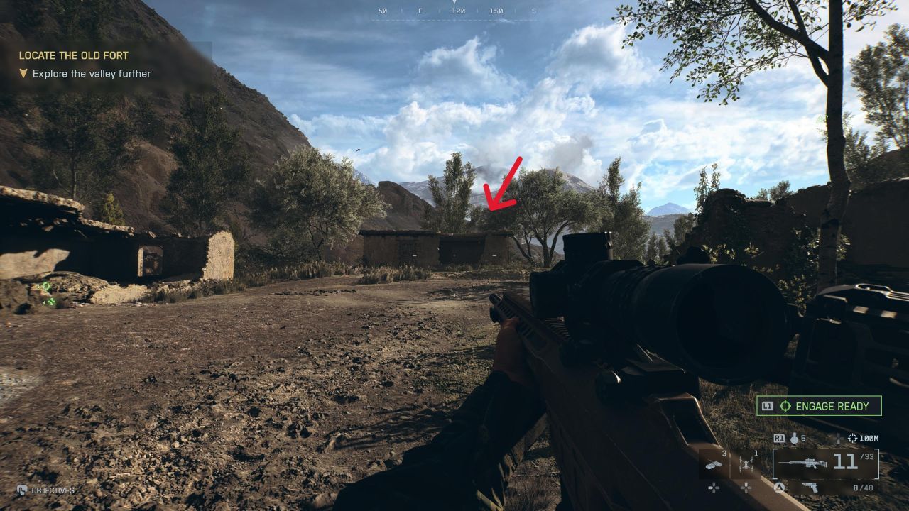 Первый жетон можно найти почти в самом начале миссии. Когда сядете на четырехколесный транспорт, чтобы исследовать долину, езжайте вниз к небольшой группе старых построек. Зайдите в разрушенное здание, и на полу, рядом с ковром, найдете жетон. Если уже достигли старого форта (крепости), значит, проехали мимо коллекционного предмета.