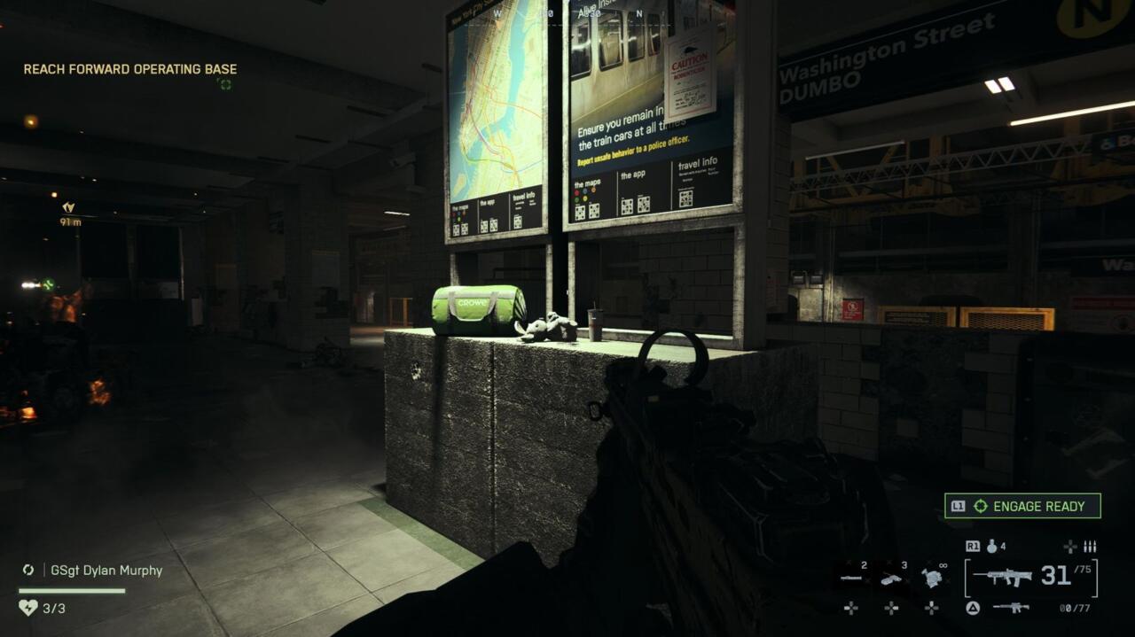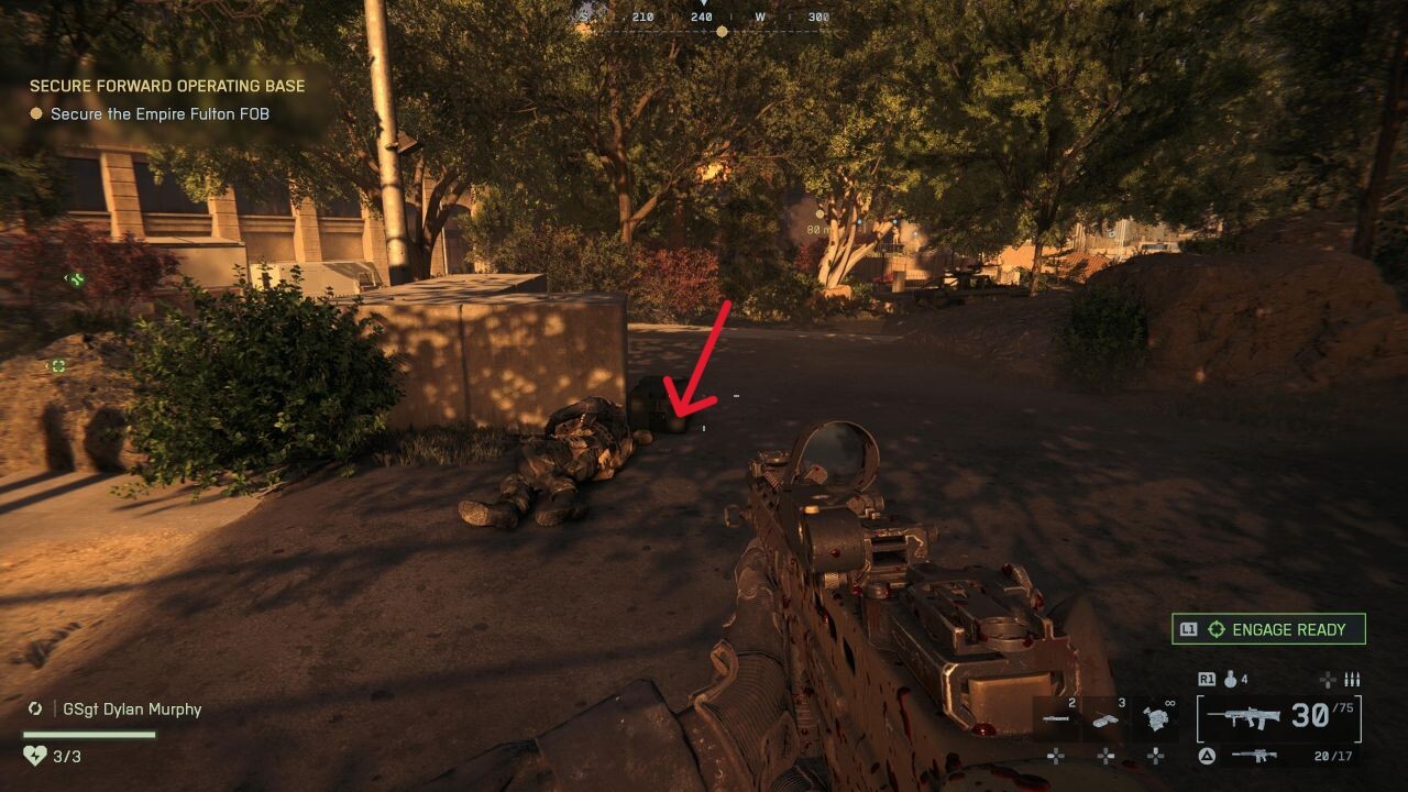 Последний жетон миссии можно отыскать сразу после выхода из туннеля. Когда побежите захватывать базу Фултона, сверните в правую сторону и пройдите через дорогу в парк. На земле увидите тело погибшего солдата, рядом с которым находятся последние жетоны.