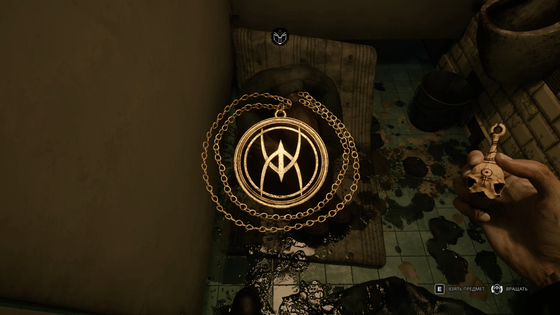 Решив головоломку с солнечными часами и отыскав комнату с первой страницей Кодекса, спуститесь на первый этаж помещения и найдите на столе медальон.