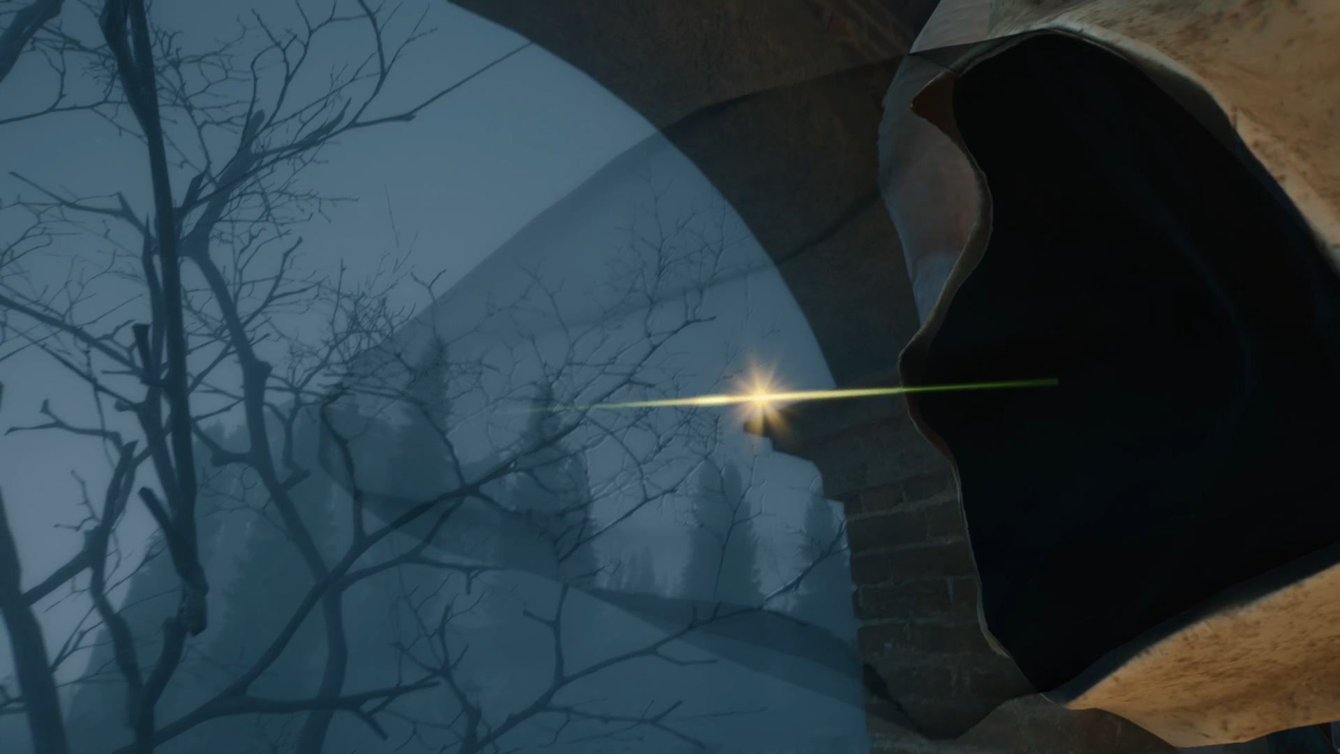 Попав в комнату на втором этаже, где найдете новую способность (отправлять ворона), примените навык, чтобы направить ворона за пределы спальни и здания, через дыру в стене. На памятнике в центре двора висит медальон.