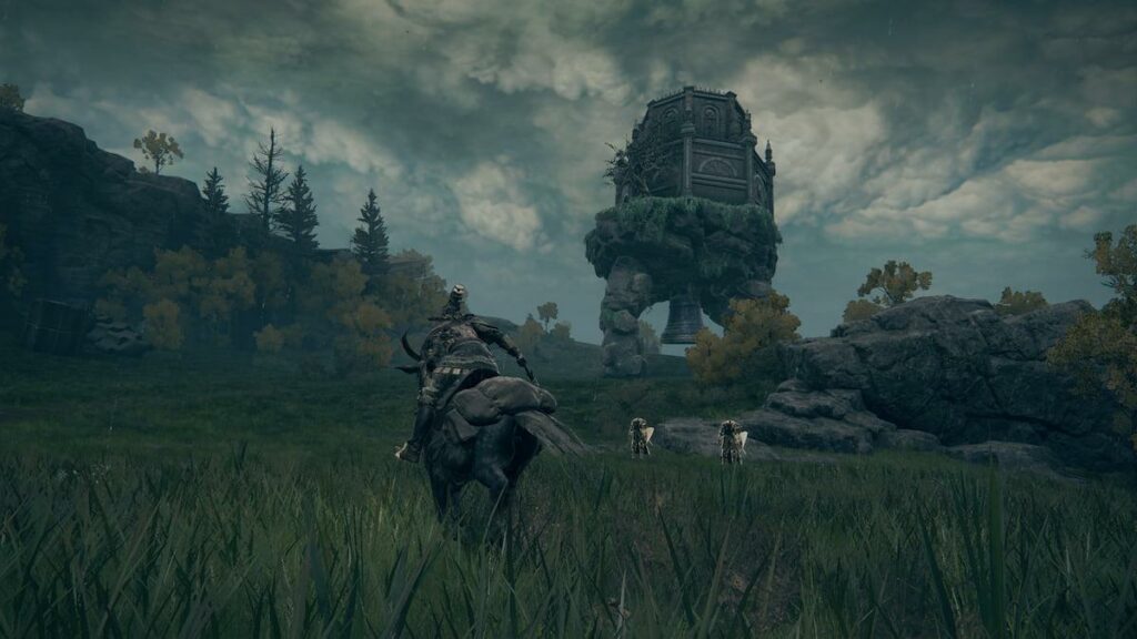 На юго-западе находится плачущее узилище, но, чтобы его активировать, потребуется один мечевидный ключ. Здесь вам предстоит сразиться с древним героем Заморой. В поле есть Ходячий Мавзолей. Вернемся к нему позже, а пока следуем чуть дальше на холм по правую руку и входим в четвертый храм Марики. Внутри него нужно активировать благодать и забрать священную слезу. Пройдите вдоль берега и обнаружите лачугу торговца-затворника. Активируйте благодать и изучите товары. У торговца можно купить фонарь, пульсирующий лист, 3 мечевидных ключа, потерянный пепел войны, цвайхендер и, что самое главное, заметку о блуждающем мавзолее.