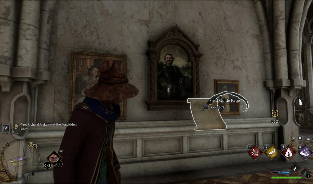 Одним из наиболее распространенных заклинаний, которые вы будете использовать для обнаружения страниц руководства, является Ревелио. При нажатии клавиши R заклинание покажет все скрытые страницы, расположенные поблизости с вами, запертые двери, элементы головоломок и сундуки. Если рядом есть страница руководства, вы увидите небольшой, парящий в воздухе лист бумаги с пером. Все страницы, которые вы собираете с помощью Ревелио, можно отслеживать в меню коллекции.