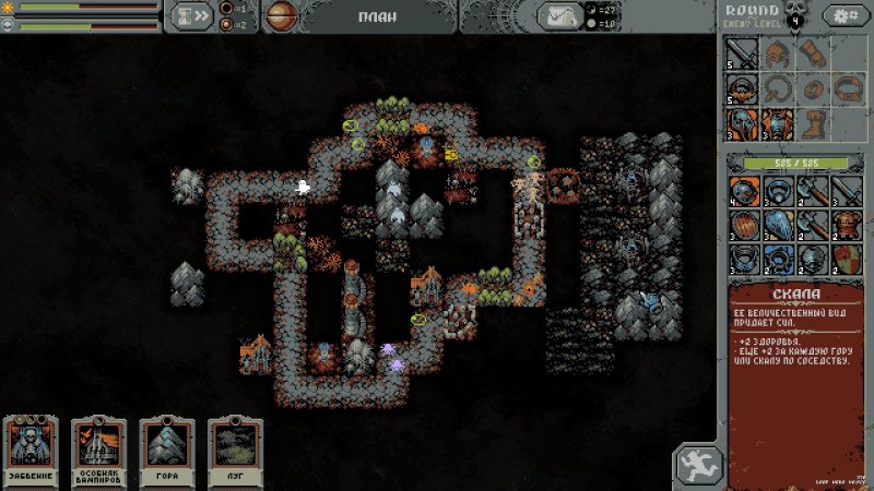 - Скала — +3 здоровья главного героя, дополнительные +3 ХП за каждую гору или скалу по соседству.