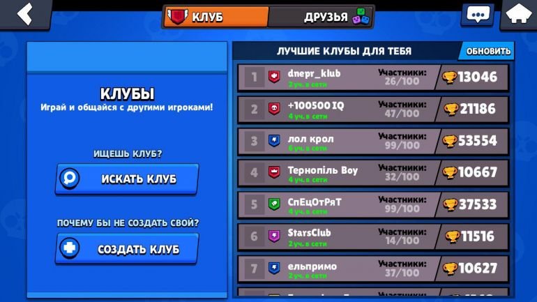 Клубы – социальные группы, в которые могут вступать геймеры. Там можно общаться с другими игроками и присоединяться к отдельным лобби для участия в бою. Для создания или вступления в уже имеющийся клуб перейдите на вкладку «Социальные сети». В клубах есть собственные таблица лидеров на основе собранных кубков. В каждом клубе может быть до ста членов, при этом общий рейтинг состоит из суммы трофеев всех участников группы.