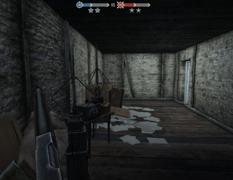 B1 расположена на холме. Рядом дом, один гараж, одна зенитная установка и один ящик с Panzerfaust 60. Вы можете использовать главную дорогу к В2 или лес слева и справа от нее. Сначала проверьте карту и убедитесь, что защитники не удерживают полностью линию C, иначе они, вероятно, будут использовать C3 для быстрого перехода к B2 или B3. Поэтому вполне возможно, что вы встретите сопротивление и окажетесь в западне. Тем не менее, ваши танки могут идти к линии C, чтобы помочь захватить C3, если она доступна. Позже танки могут помочь защитить мост и пересечь его. Радио расположено на первом этаже, к нему можно подойти с лестницы или двух боковых входов.