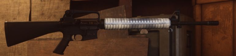 Модификация классической M16. Практически идентично M16A4: используются те же патроны, одиночный и взрывной (по три пули) режимы стрельбы. Оптические прицелы бесполезны. Если бы оружие стоило два очка, то ему можно было бы отдать предпочтения, но за три лучше всего выбрать АКМ.