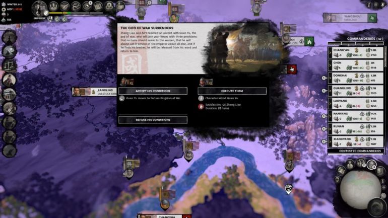 Намного позже, когда в вашей армии будет Чжан Ляо, и вы будете сражаться с Лю Бэем, богом войны, Гуань Юй, возможно, захочет присоединиться к вашей фракции. Опять же, не факт, что это произойдет автоматически.