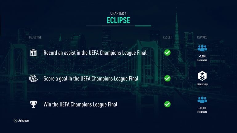 - Выиграйте финал Лиги Чемпионов УЕФА (Награда: +10 000 подписчиков)