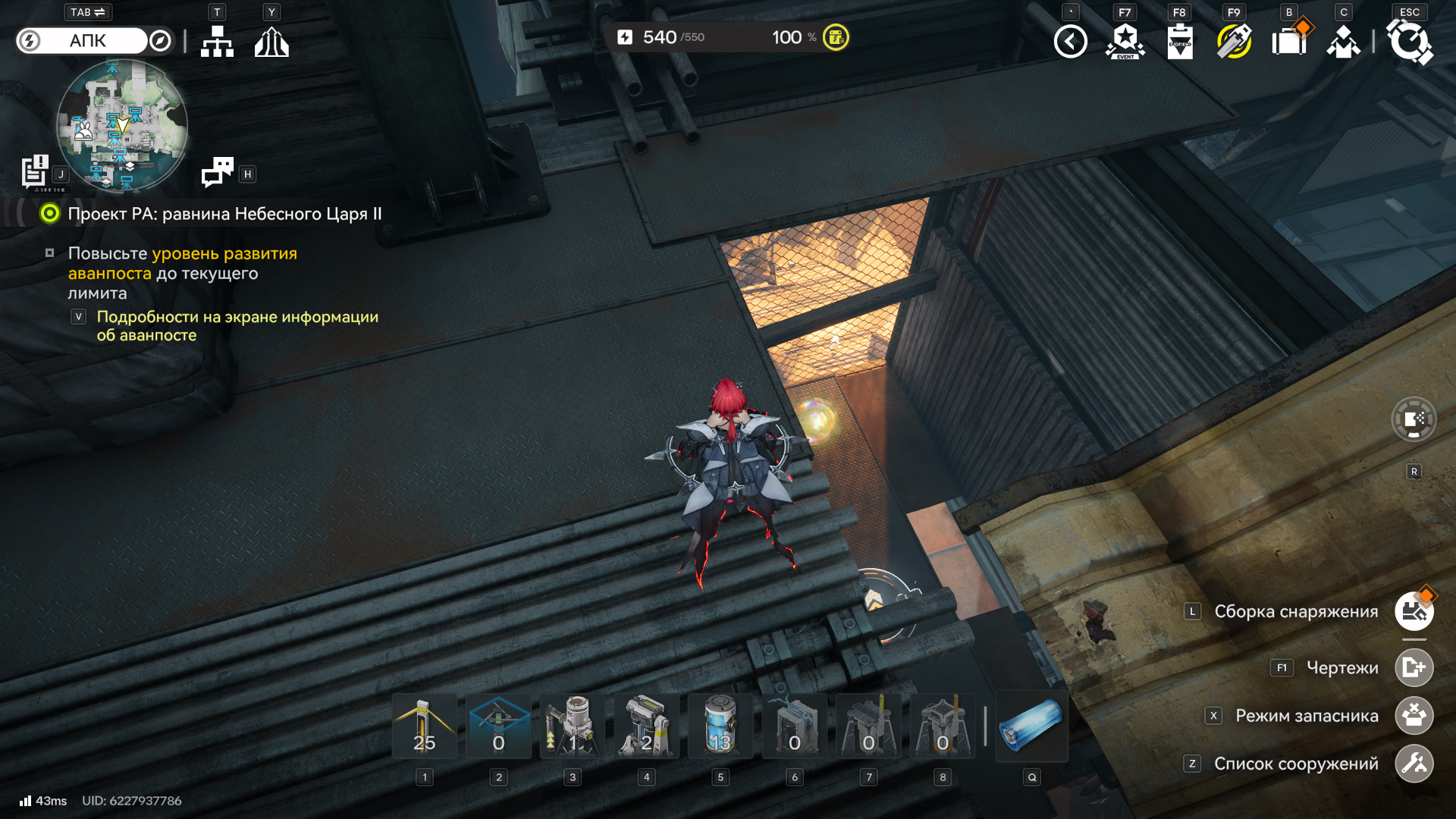 Поднимитесь по тросу впереди. Здесь находится лопасть, которую вы использовали по сюжету, чтобы опустить мост. Развернитесь и пройдите под козырьки крыши. Найдите обычную добычу. Пройдите чуть вперед и посмотрите влево. Снаружи на крыше летает аурилен.