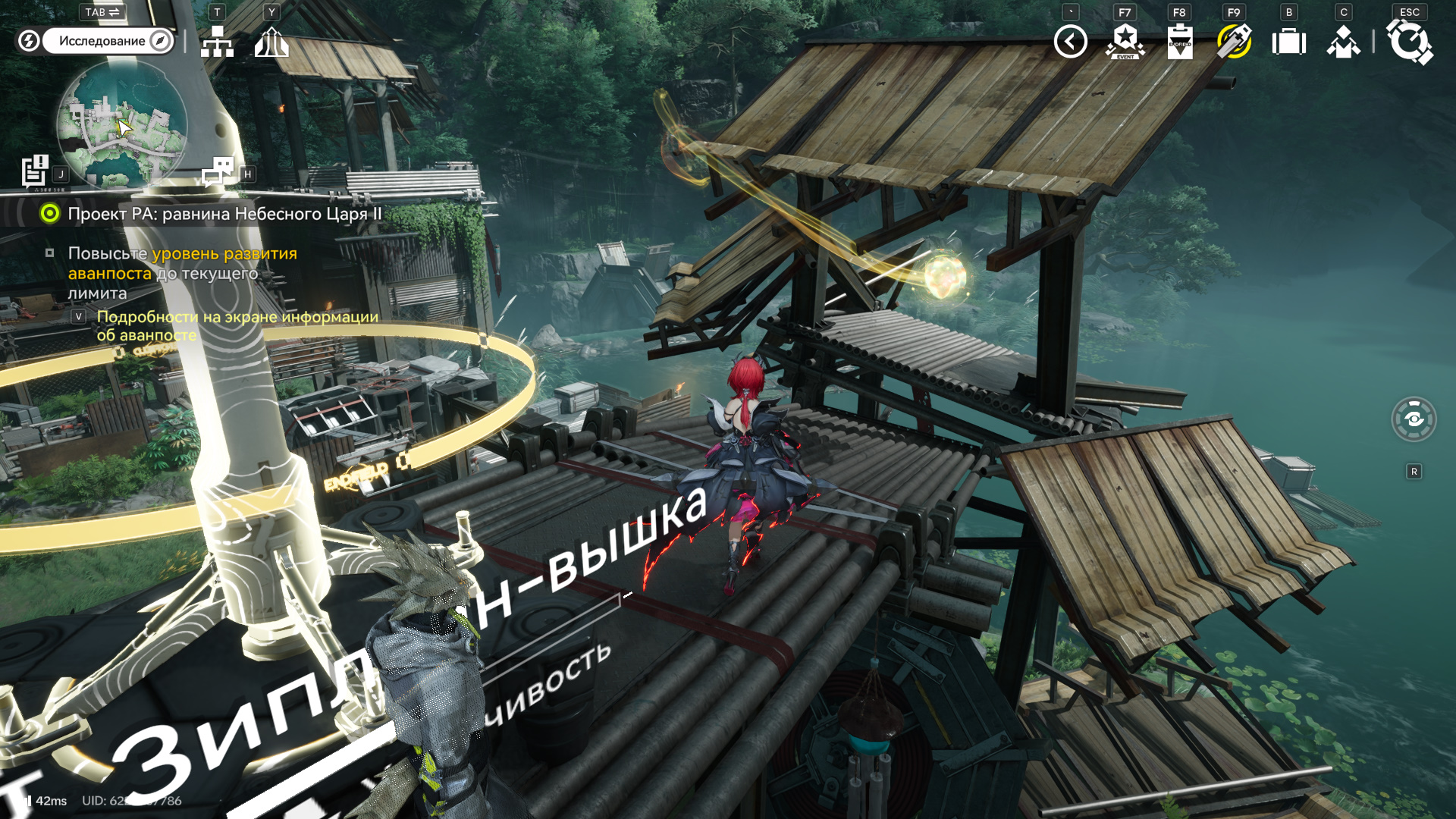 Перемещайтесь к точке телепротокола в Остролесье (к северу от надписи на карте), где также находится сильный аллювий энергии. К юго-востоку за башней есть трос, ведущий наверх, на мостик с ауриленом. Поднимитесь и догоните аурилен.