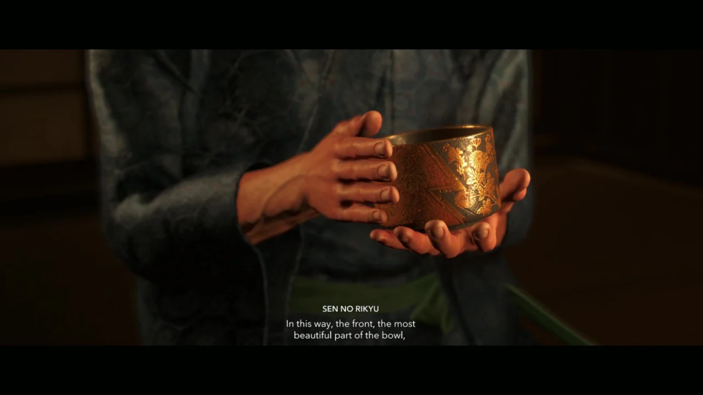 Вам нужно будет возвращаться к Сэн-но Рикю с одной, тремя, пятью и семью чашками. Каждый раз он будет давать в награду какой-то элемент декора. Когда принесете все 7 коллекций чашек, получите основную награду — 1000 очков опыта.