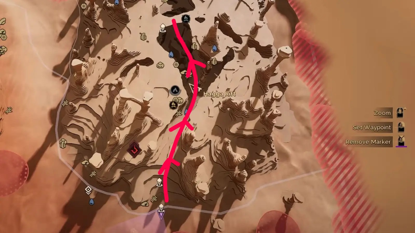 Самое эффективное место для фарма — Разлом Хагга. Лучше всего заходить туда с восточной стороны. Попав в ущелье, двигайтесь вниз по склонам и ищите разбитые орнитоптеры и крупные пещеры.