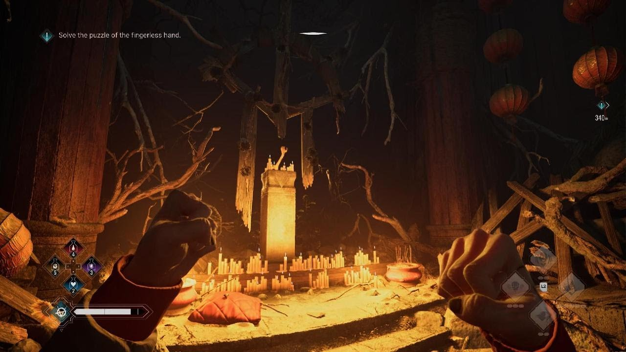 Когда впервые обнаружите руку, появится цель: «Решить загадку беспалой руки». При этом игра не дает никаких подсказок, но, несмотря на это, головоломка не слишком сложна.