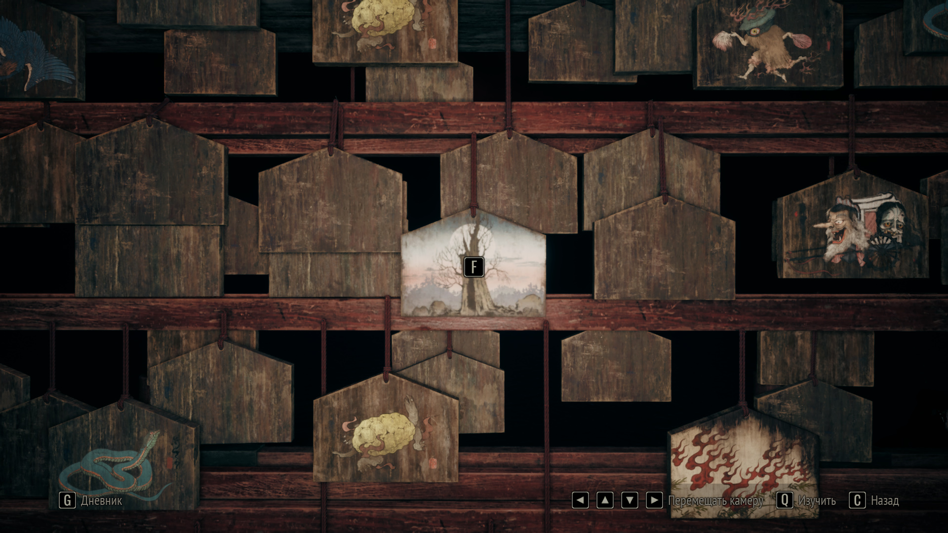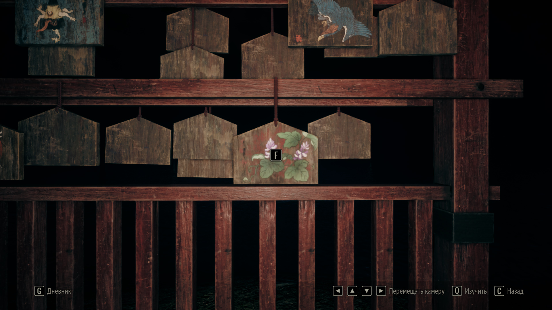 Кроме того, рядом со стендами на камне лежит документ «Окровавленное письмо». В этом письме говорится, что некто спрятал мощный омамори, но не указывается, где. Осмотрите внимательно стенды и найдите дощечку с рыжим котом. Разверните ее, чтобы получить омамори-кошка (значительно снижает урон, получаемый при уклонении). Находится эта дощечка там же, где и дощечка со вторым символом из головоломки.