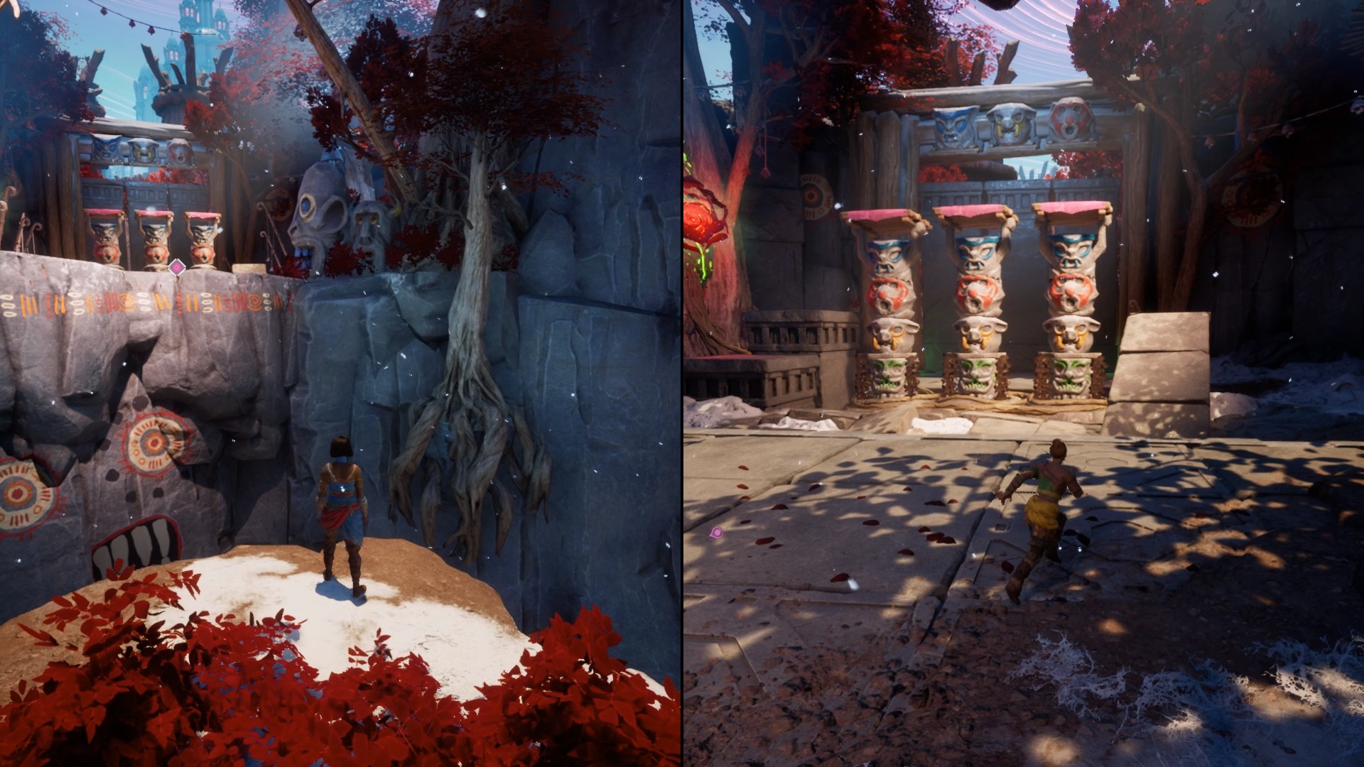 Мио может ударять по тотемам, чтобы опускать их вниз, а Зои — удерживать их в нужном положении силами энта.