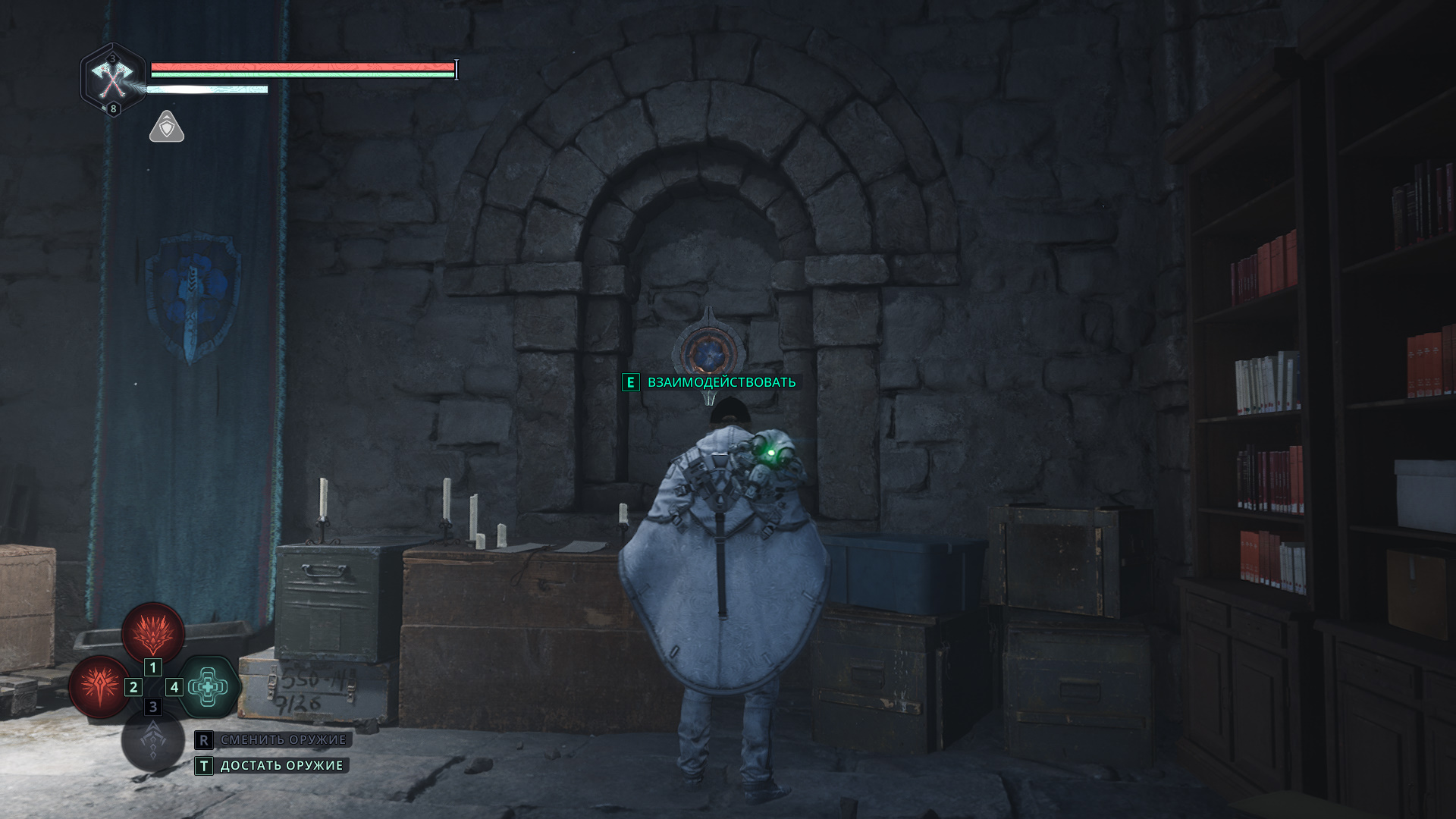 - Там же на стене у выемки Горя есть табличка. Изучите ее и узнаете, что Дозор был основан в 1513 году. Вернитесь в помещение с компьютером и доской. Изучите доску и увидите, что выемка, отвечающая за 1513 год, расположена справа от знамени. Само знамя висит справа от доски. Вставьте глиняный цветок в слот справа от знамени.