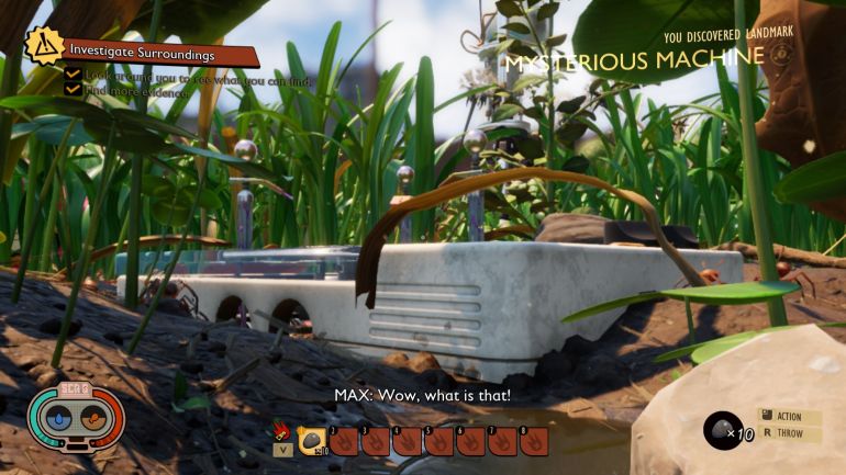 Следуйте вправо по тропинке от полевой станции. Подберите мертвую мошку, чтобы получить пух мошки (Gnat Fuzz). Можете вернуться и проанализировать его. Также новые рецепты будут открываться по мере того, как вы собираете ресурсы. Пройдите вперед до таинственного устройства, чтобы завершить квест.