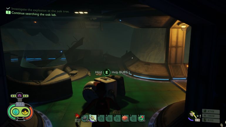 За выполнение квестов BURG.L вы будете получать специальную валюту — очки науки. Их же можно получить при разблокировке новых рецептов, находке новых предметов или при взаимодействии с фиолетовыми сгустками (несколько таких есть в лаборатории). Затем очки науки можно потратить на улучшения, которые продает сам BURG.L.