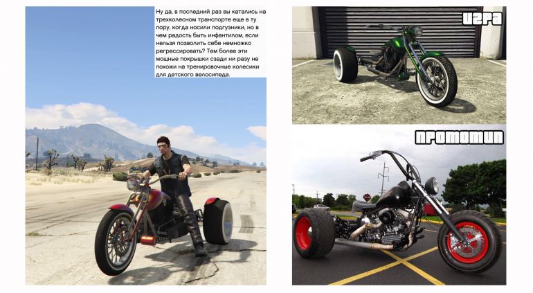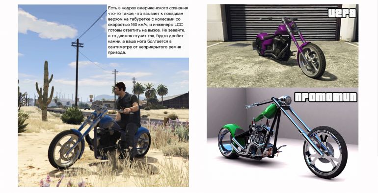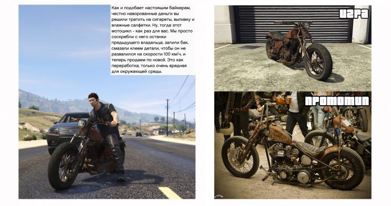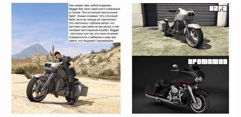 ПРИМЕЧАНИЕ: Bagger был в GTA Online и раньше, однако для покупки стал доступен только с выходом обновления «Байкеры».