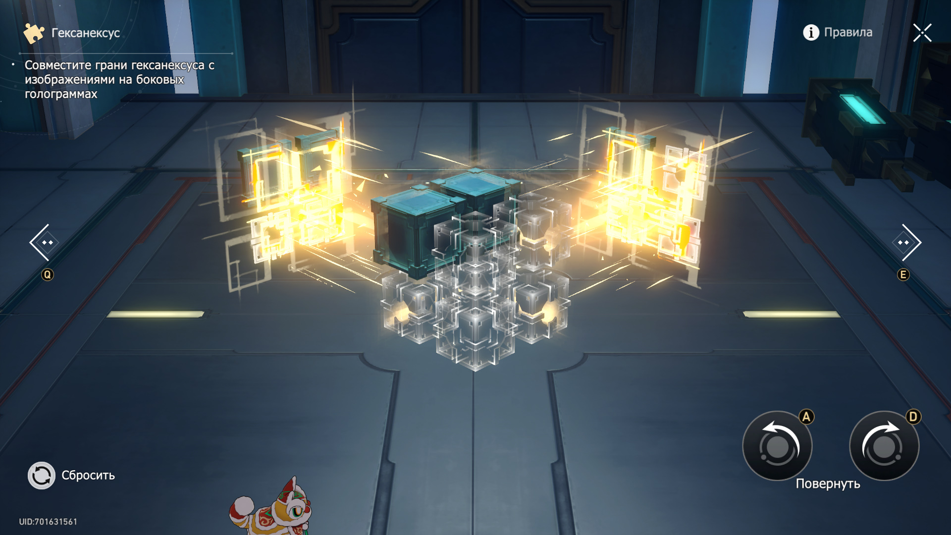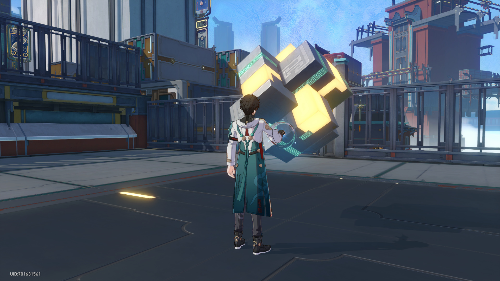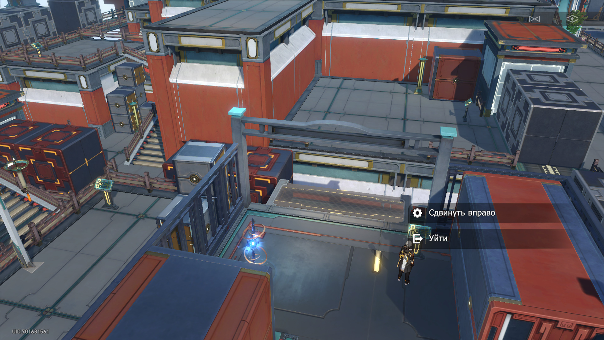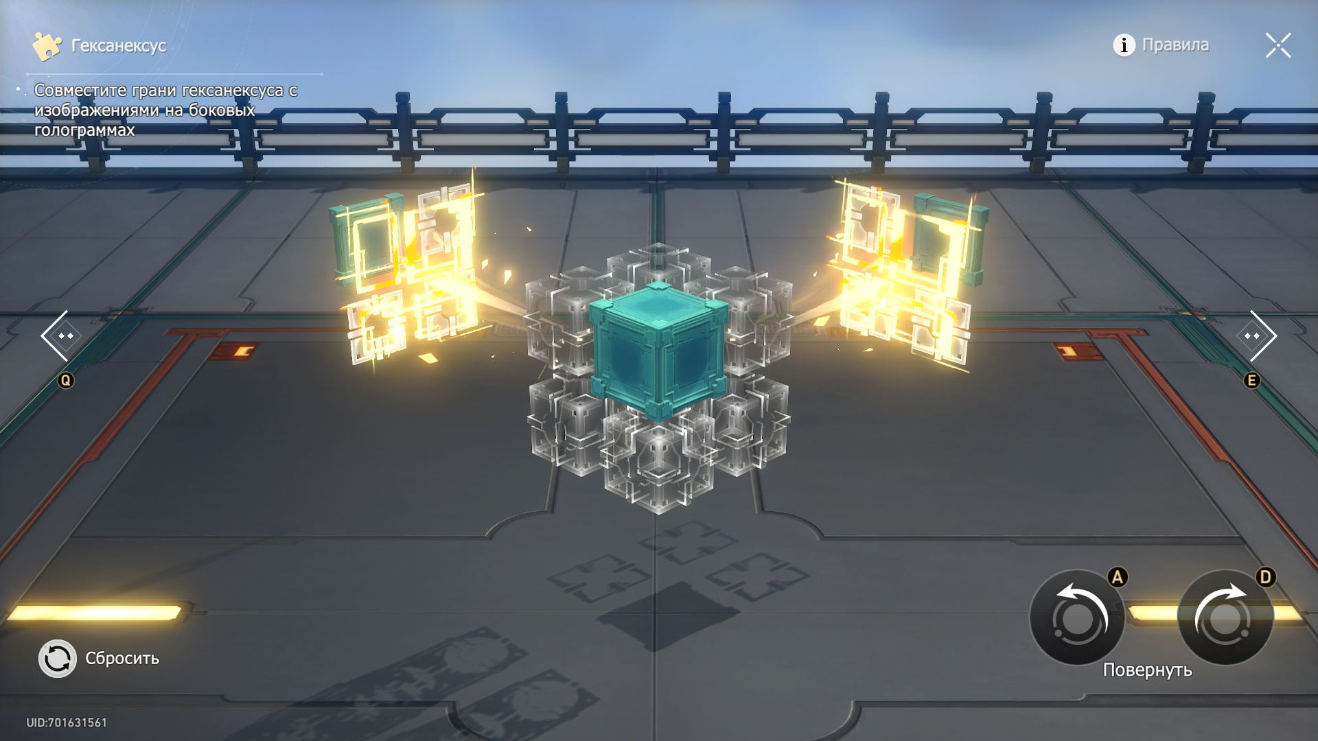 Вернитесь к телепорту и поверните его! Уже после телепортируйтесь в совершенно новое место и откройте обычный сундук. Поверните теперь этот телепорт и переместитесь дальше, чтобы попасть на еще один летающий корабль с обычным сундуком. Разверните телепорт и переместитесь туда, куда улетел Дань Хэн в его побочной миссии. Решите очередную загадку с Гексанексусом. Нажмите на третью кнопку справа налево по нижнему ряду и поверните четыре куба дважды в любом направлении. Левой верхней кнопкой выберите верхние кубы и поверните дважды в любом направлении. Обыщите ценный сундук и взаимодействуйте с сидящей неподалеку робоптахой. Двигайтесь следом и убейте врагов. Позвольте робоптахе взять посылку. Откройте большую дверь, но, прежде чем идти, найдите справа от нее обычный сундук. Доберитесь с робоптахой до пункта назначения и обыщите ценный сундук.