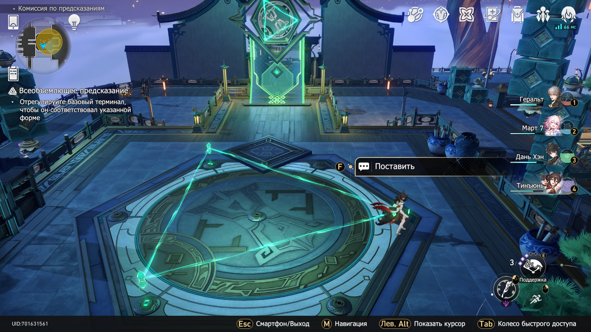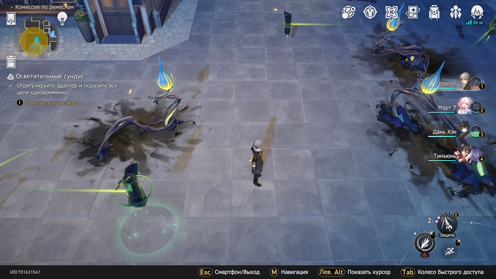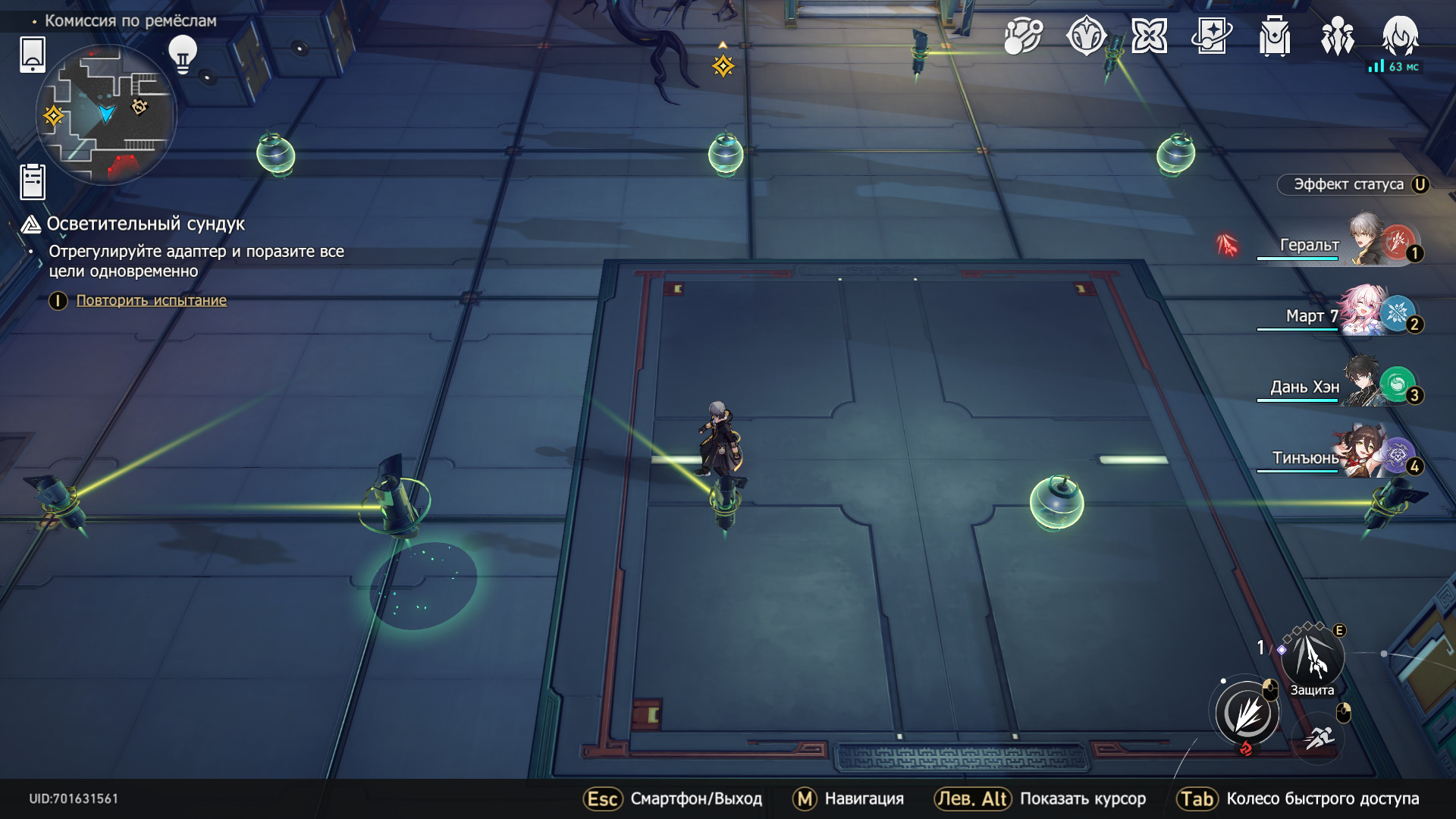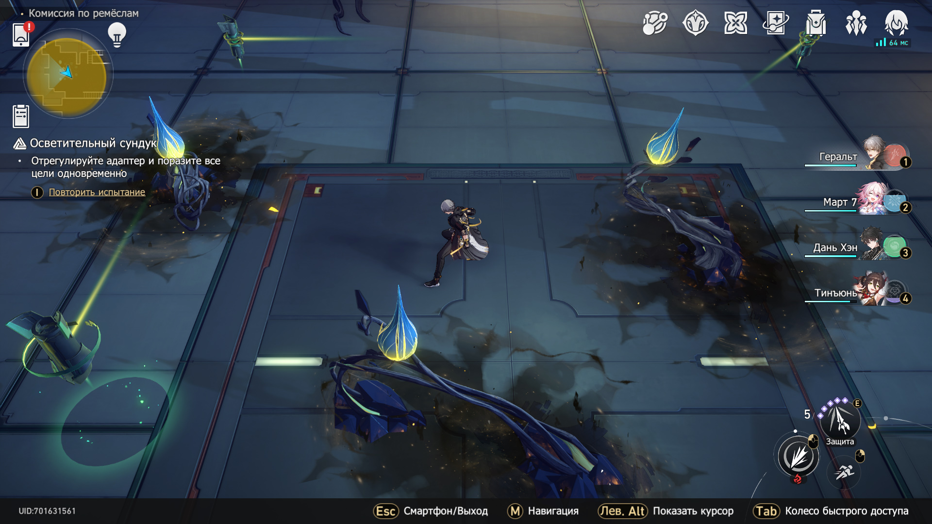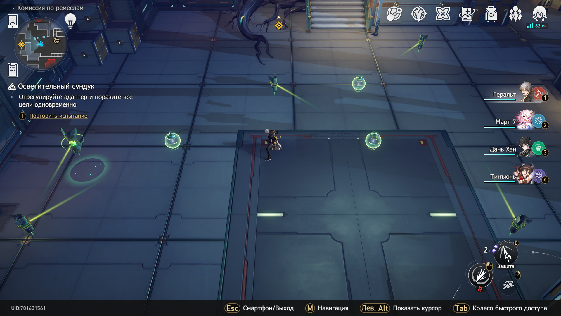Вернитесь к телепорту и поверните его! Уже после телепортируйтесь в совершенно новое место и откройте обычный сундук. Поверните теперь этот телепорт и переместитесь дальше, чтобы попасть на еще один летающий корабль с обычным сундуком. Разверните телепорт и переместитесь туда, куда улетел Дань Хэн в его побочной миссии. Решите очередную загадку с Гексанексусом. Нажмите на третью кнопку справа налево по нижнему ряду и поверните четыре куба дважды в любом направлении. Левой верхней кнопкой выберите верхние кубы и поверните дважды в любом направлении. Обыщите ценный сундук и взаимодействуйте с сидящей неподалеку робоптахой. Двигайтесь следом и убейте врагов. Позвольте робоптахе взять посылку. Откройте большую дверь, но, прежде чем идти, найдите справа от нее обычный сундук. Доберитесь с робоптахой до пункта назначения и обыщите ценный сундук.