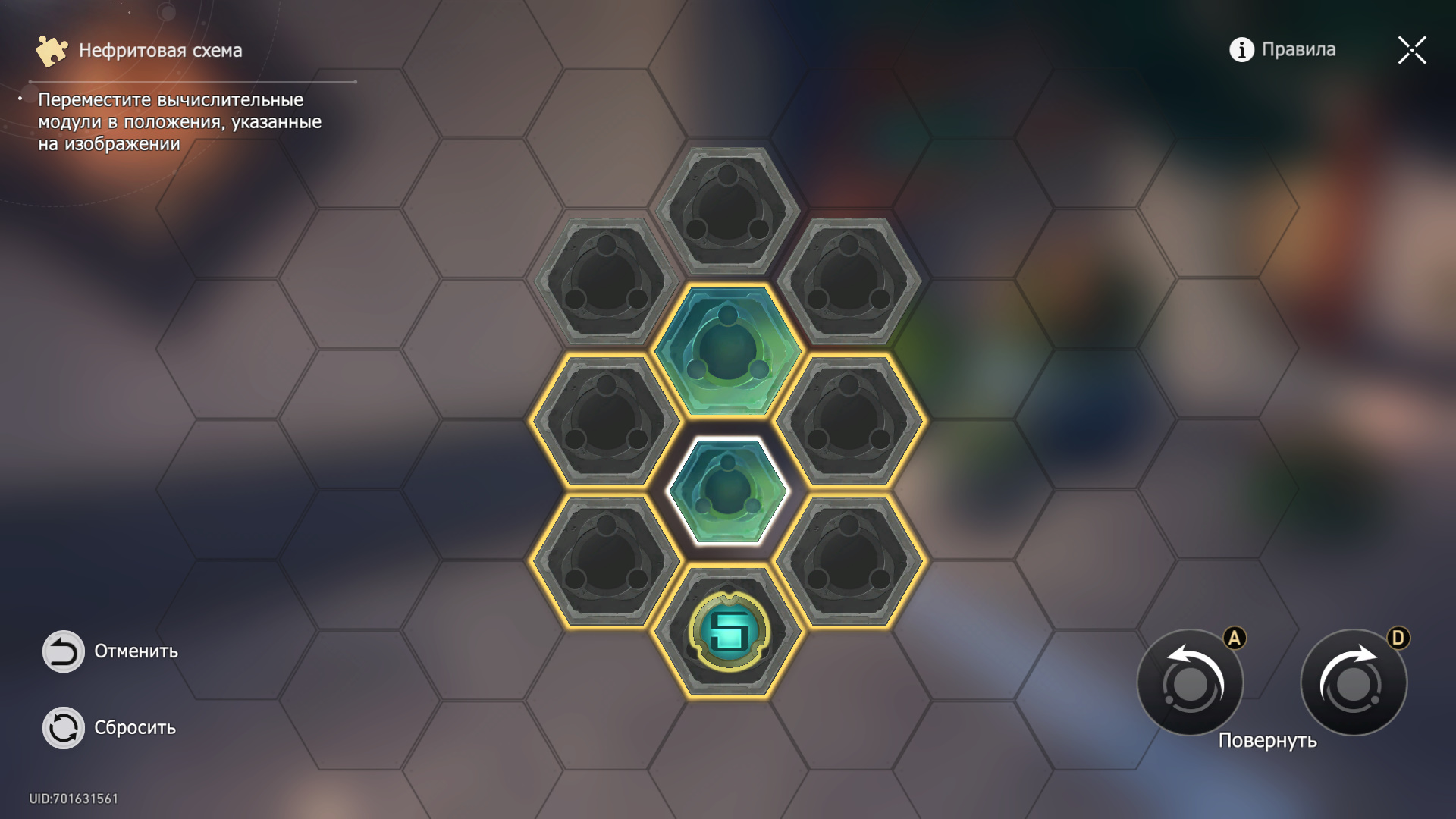 Сразитесь с рыцарем, вернитесь к канцелярии и встаньте в указанное место. Пообщайтесь с Цинцзу по телефону, пройдите к вазе и взаимодействуйте с ней, чтобы получить тайное письмо. Осмотрите два места, отмеченных маркерами. Запустится новая головоломка «Нефритовая схема». По сути, это пятнашки. Вам нужно переместить вычислительный модуль сверху в такой же слот снизу. Выберите верхнюю ось из двух и поверните дважды по часовой или против часовой стрелки. Выберите ось ниже и поверните, пока модуль не совпадет с пустым слотом такой же формы. Пройдите в указанное место, чтобы встретить лидера, Мастера Пурпурную Розу.