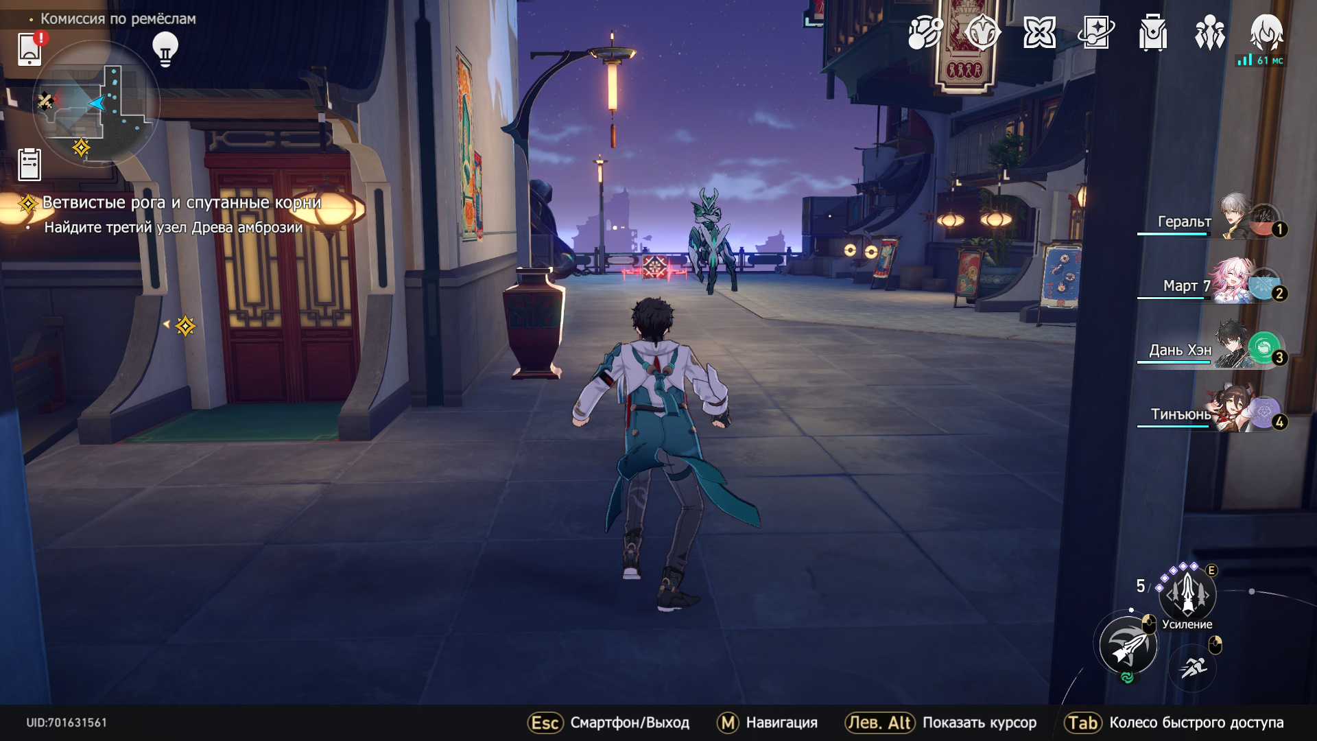 Уничтожьте новых врагов (учеников Санктус Медикус Внутренних алхимиков), которые после гибели взрываются и наносят вам дополнительный урон. Поднимитесь по ступеням, поверните в левую сторону, уничтожьте вражескую группу и обыщите обычный сундук, спрятанный в тупике. Идите в противоположную сторону, зачистите площадку и откройте большие ворота, создав короткий путь назад. Пройдите через двери в сторону маркера, справа найдите обычный сундук, а с левой стороны — птицу-доставщика. Взаимодействуйте с ней, сопроводите к посылкам и следующему месту доставки, чтобы получить ценный сундук. Доберитесь до указанного места и пообщайтесь с Цинцюэ. Пройдите еще дальше и встретите Цзина Юаня и Фу Сюань.