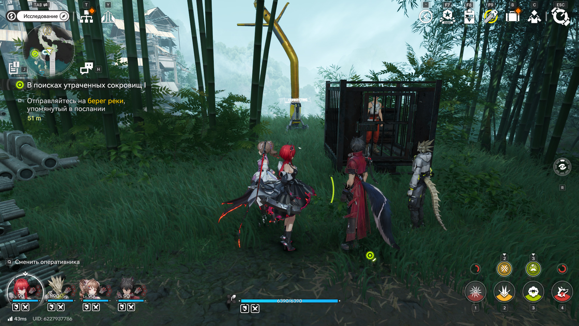 Следуйте за Ду Мином, уничтожьте врагов около точки телепротокола и продолжите движение. Вернитесь по маркеру и изучите 3 бамбука, чтобы найти хороший напиток. Затем идите назад к роднику предков.