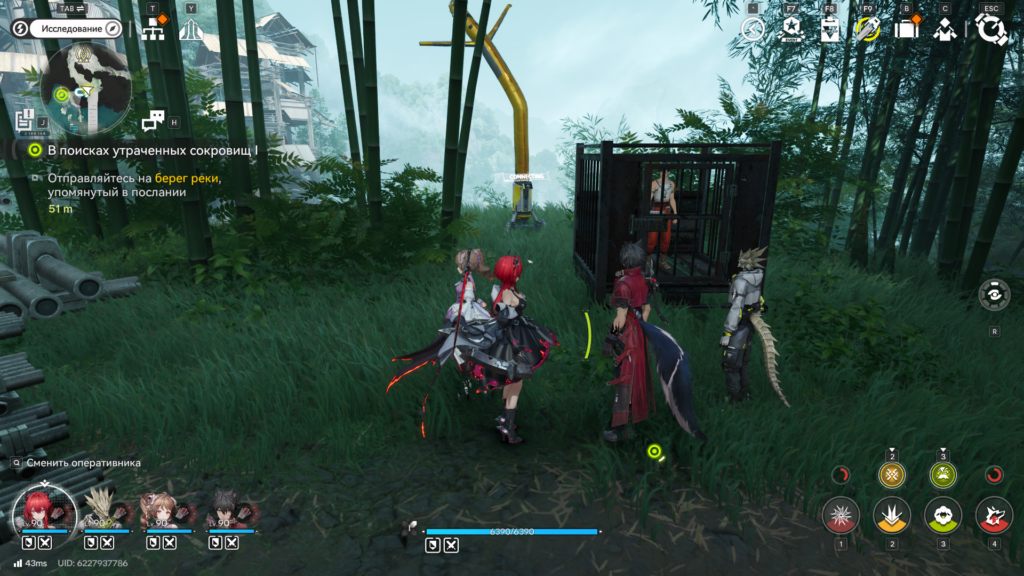 Следуйте за Ду Мином, уничтожьте врагов около точки телепротокола и продолжите движение. Вернитесь по маркеру и изучите 3 бамбука, чтобы найти хороший напиток. Затем идите назад к роднику предков.