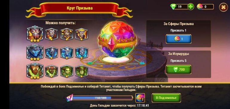 Существует огромное количество способов, позволяющих собрать камни душ для призыва новых героев: открытие сундука, выполнение миссий, участие в ивентах, покупка в магазине за уникальные валюты, привязанные к разнообразным режимам (арене, башне и так далее). Что касается Титанов, то основным источником их камней душ будут сферы призыва. Их вы можете получить разными способами. Основной, но далеко не самый эффективный — прохождение уровней Подземелья. Игра наградит вас сферой призыва по достижении определенного уровня или в том случае, если вы за день соберете конкретное количество титанита. А еще сферы призыва начисляются каждому участнику гильдии, когда всем игрокам разом удалось собрать нужное количество титанита.