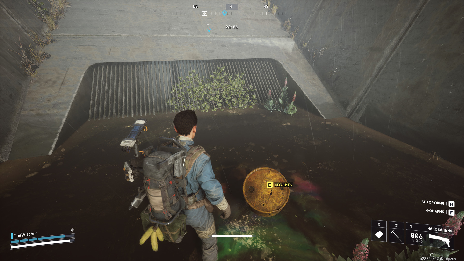 Чуть выше нее, на севере, ищите небольшой участок под склоном из бетона с водой. Там стоит бочка, с которой и нужно взаимодействовать, чтобы получить образец и завершить задание.