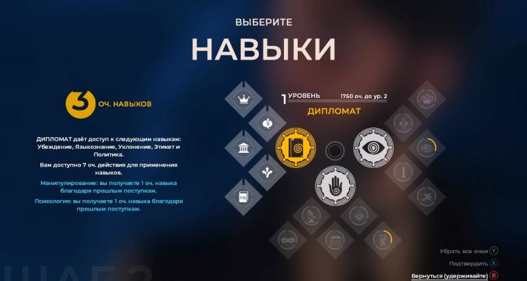 Каждый навык по-своему полезен, однако прокачать их все одинаково не получиться. Поначалу мы советуем вложиться в три способности, которые наиболее часто используются в игре: в «уклонение» из ветки дипломата, «манипуляцию» из ветки оккультизма и «психологию» из ветки детектива.