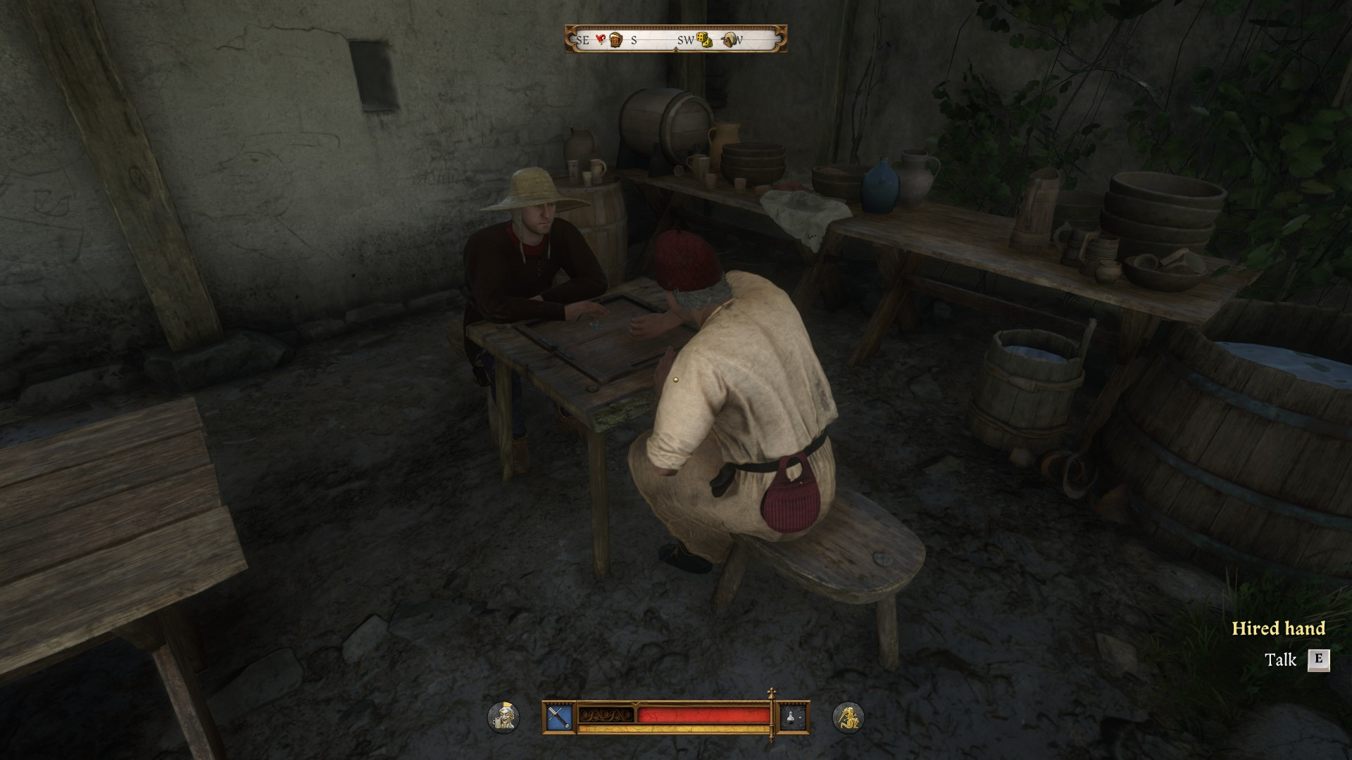 Возможно, разработчики в будущем это пофиксят, но вы можете украсть кости Святого Антиоха у батрака, который предлагает сыграть в кости на веранде корчмы Тросковице. Этот мужчина показан на скриншоте ниже: