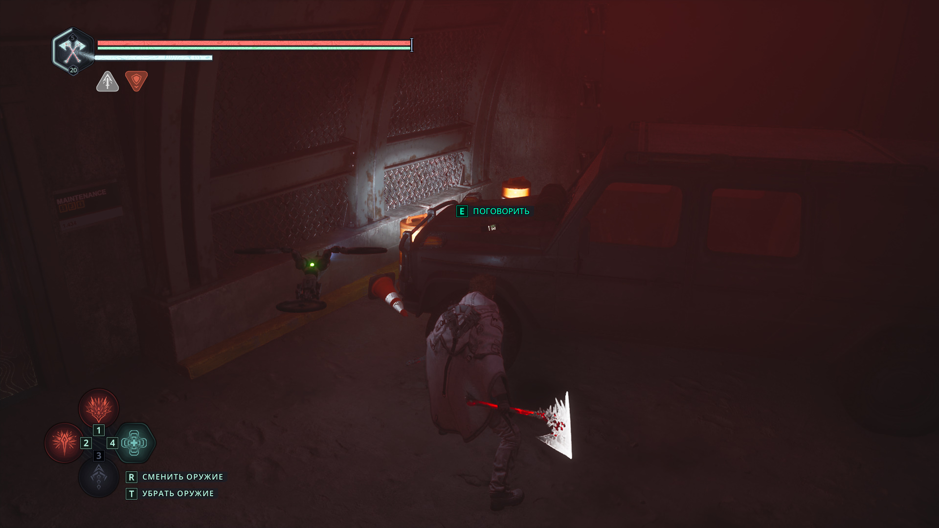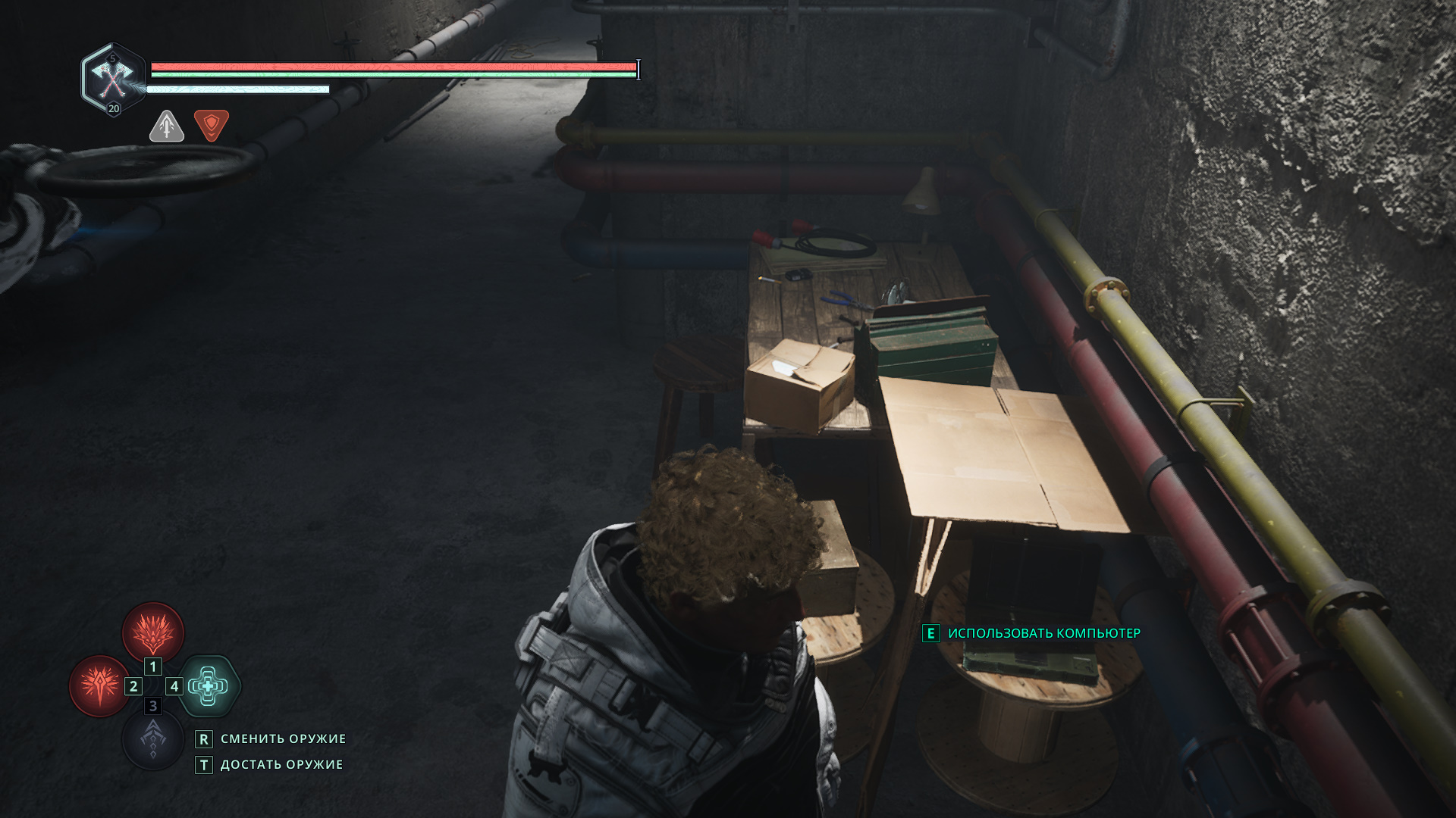 Спуститесь на один этаж ниже и войдите на этаж B2. Идите по коридору и взаимодействуйте с красной дверью. Внутри застрял мужчина. На столе в самом конце лежат ключ «Обслуживание». Там же стоит компьютер, в котором рассказывается об аварийных процедурах.