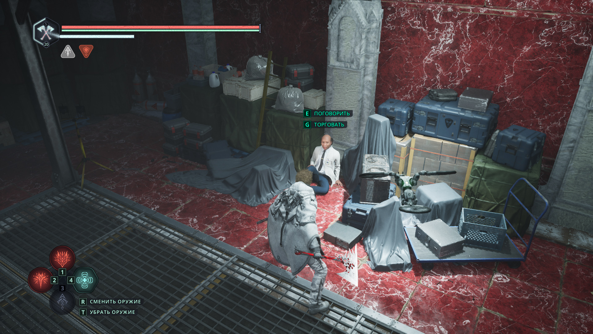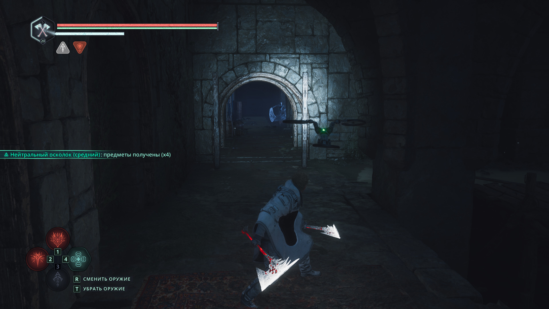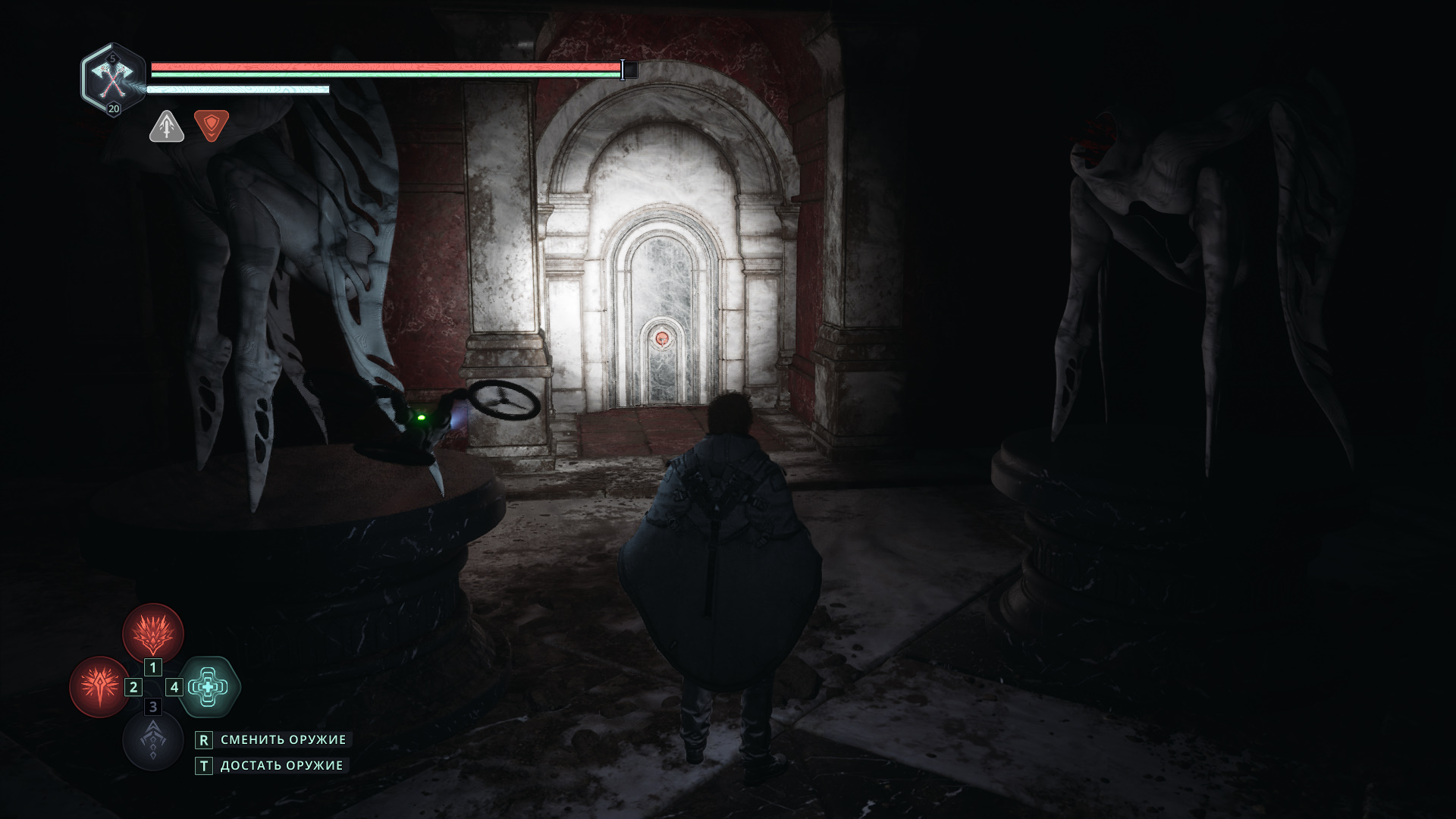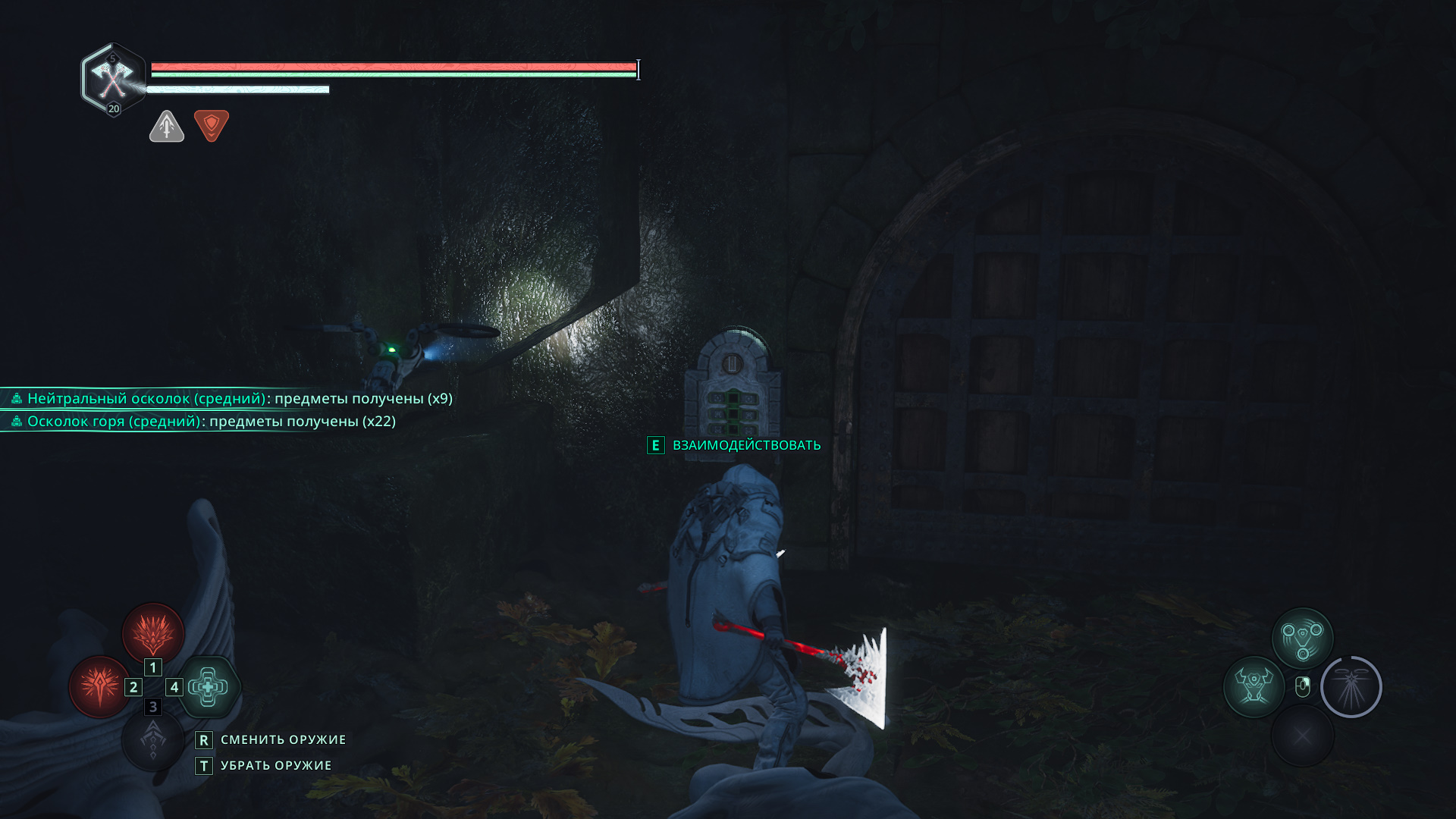 Как только откроете эту дверь, раскроете тайну «Жертва шантажа». Внутри ищите: лимбическая сфера «Испуг (сильный)», парные топоры гнева, чаша с пеплом (предмет для исследования).