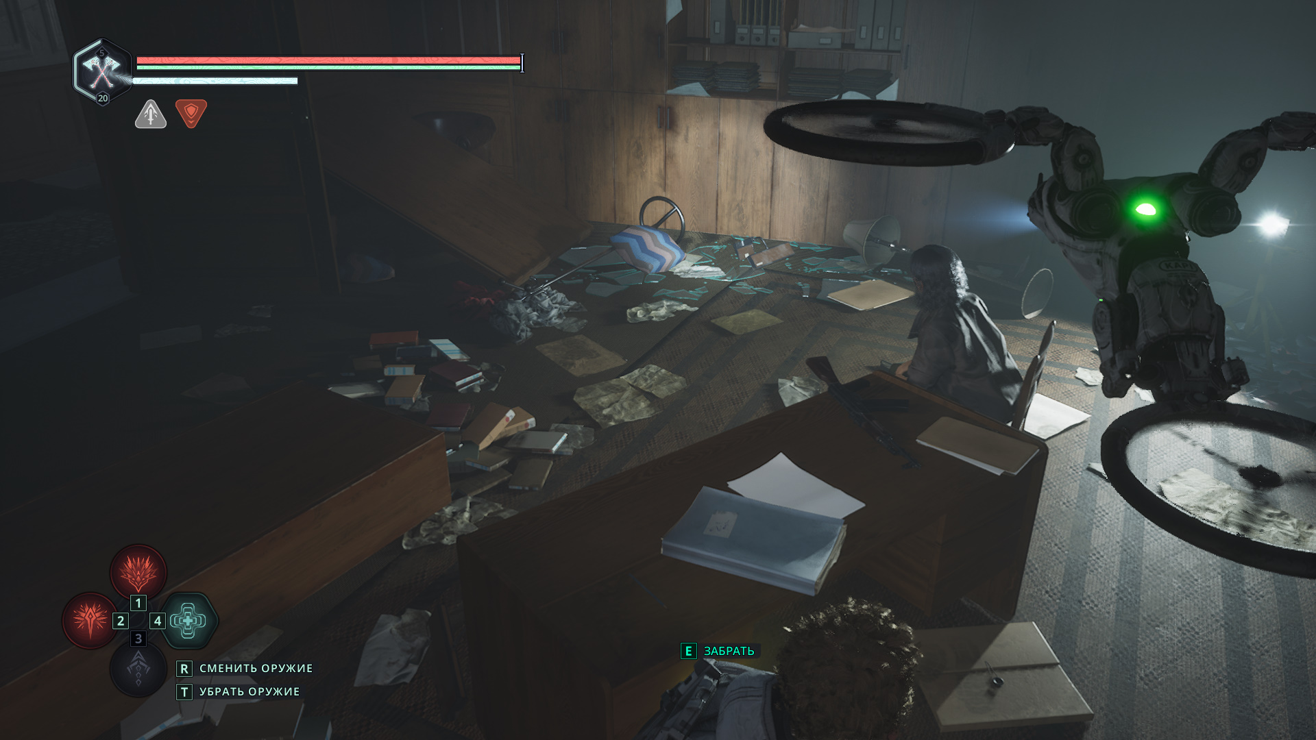 В офисе 109 справа есть сейф с 4-значным кодом. Ранее вы должны были изучить отдел реставрации книг, запертый офис, около которого собрались выжившие в Национальной библиотеке Леты. Там была записка, в которой говорилось за офис 109 и код 2703. Введите, чтобы получить официальную печать Хадеи. В офисе 112, в столе ищите пустые удостоверения, которые также понадобятся выжившим из Национальной библиотеки Леты.