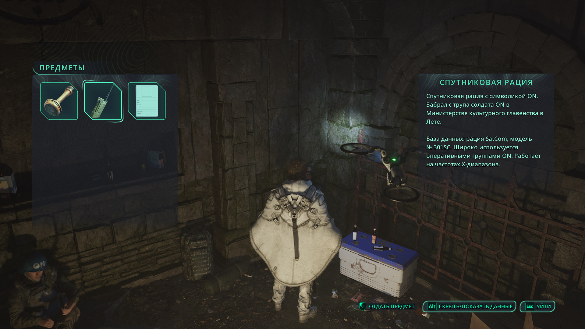 Также откройте ближайшую дверь, чтобы найти труп с желтым предметом в заблокированном коридоре. Это спутниковая рация, которая нужна одному из миротворцев в подземелье сбоку от деревни Джова. Другому вы уже должны были отнести метформин.