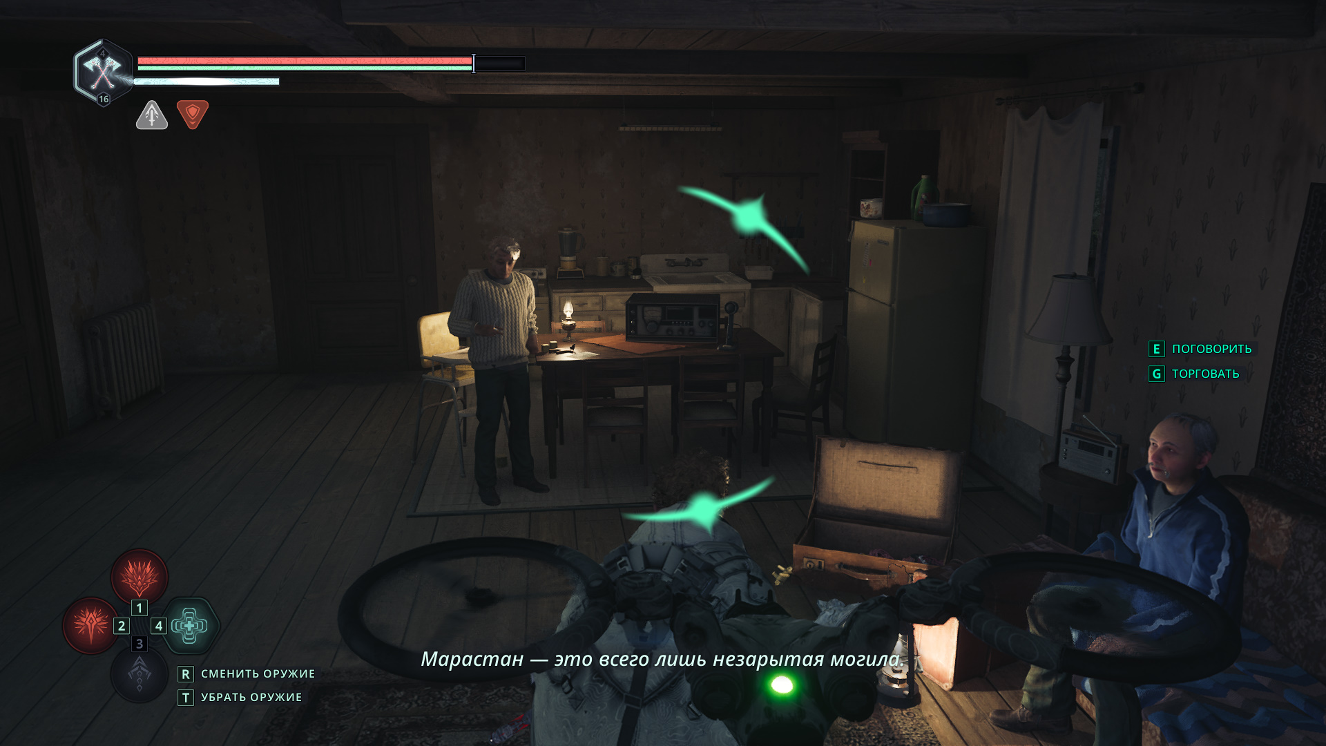 Установите второй предохранитель в щиток на доме справа от Талиса. Можете спуститься в подвал и пообщаться с мужчиной, который переживает за пленных девушек.