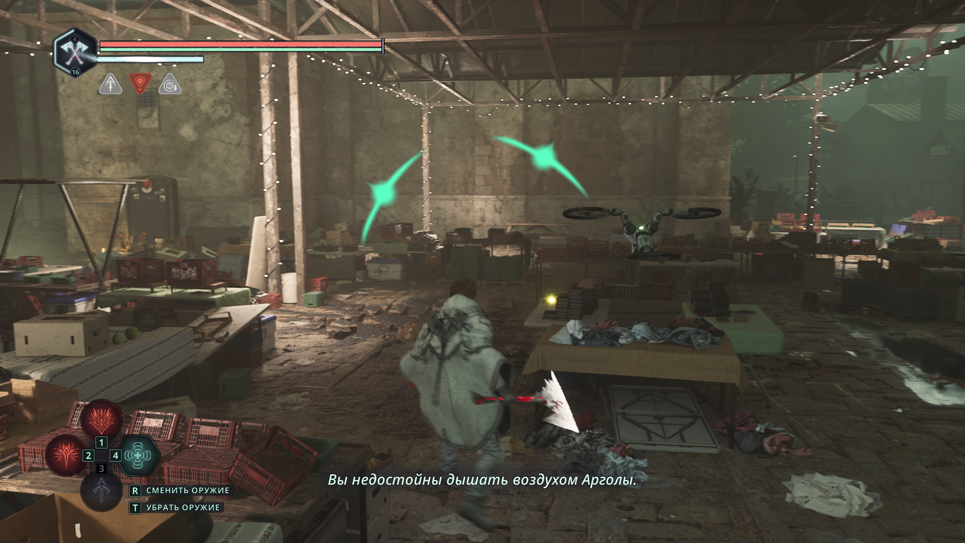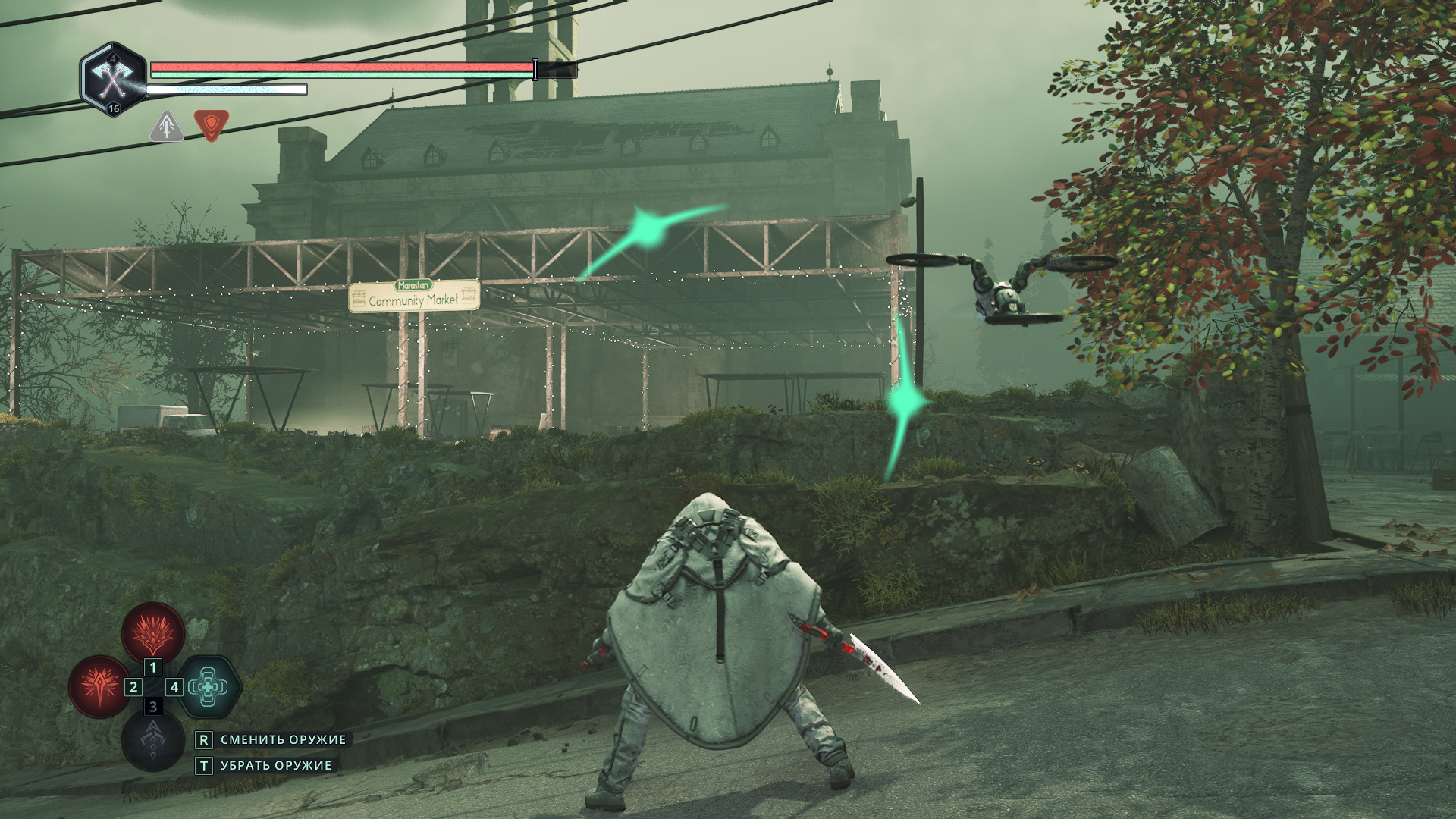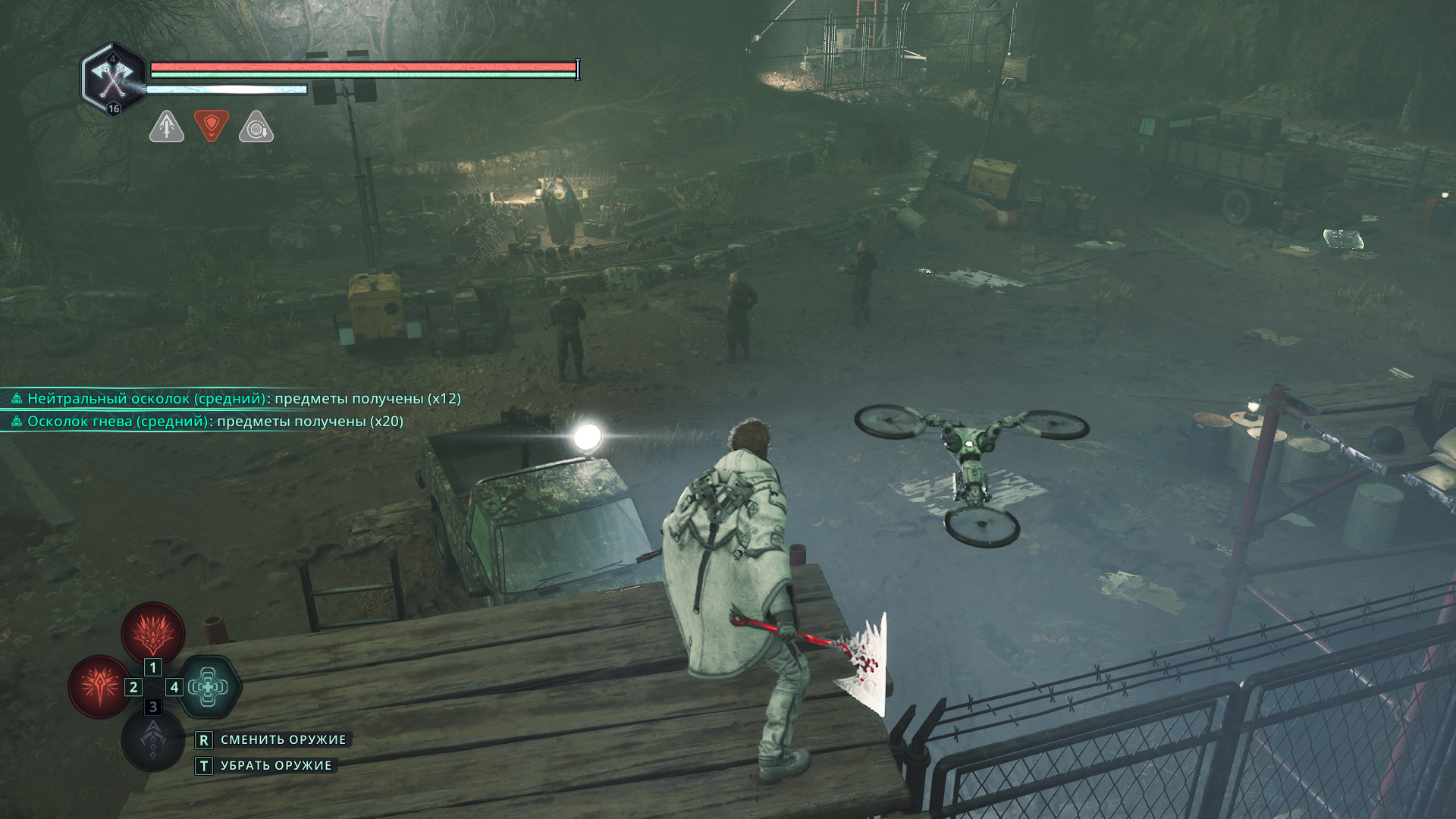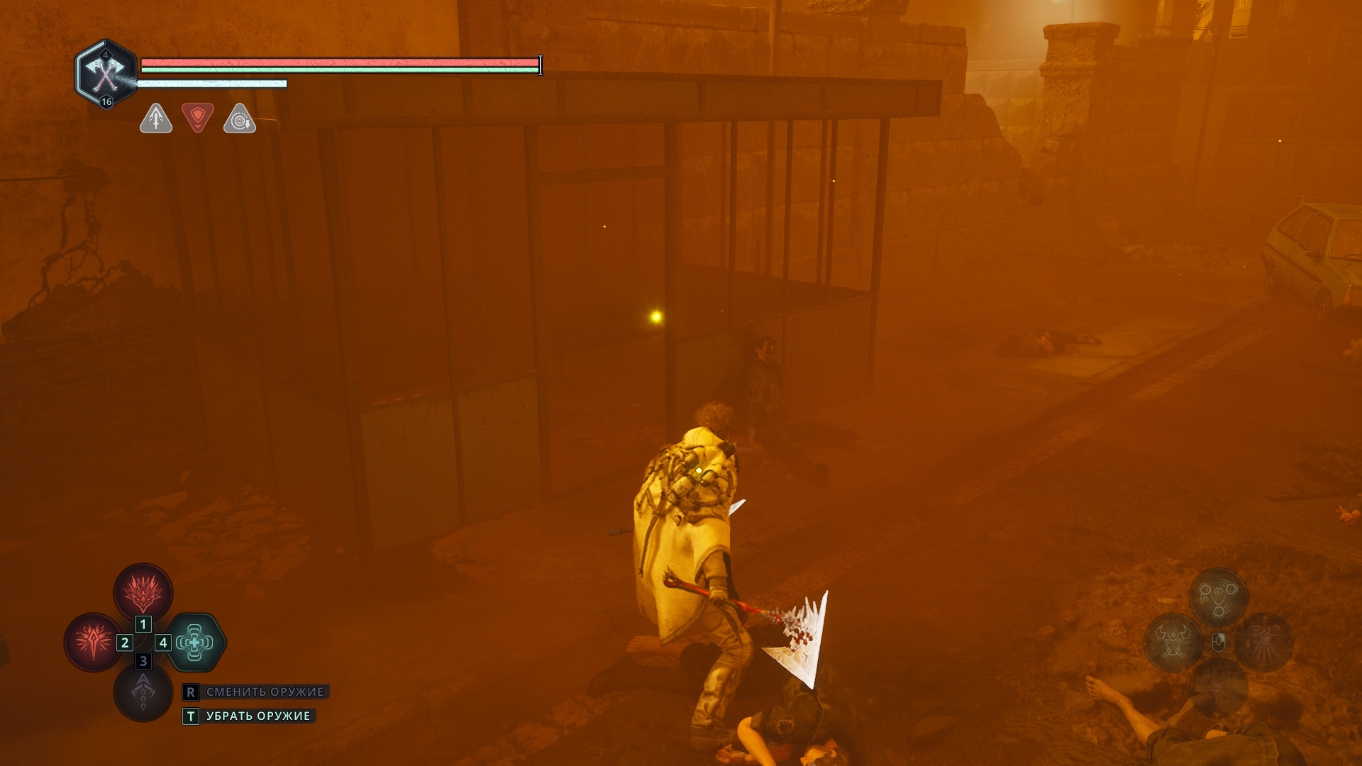 Обойдите аптеку по левой стороне, пройдите мимо нее, убейте монстра около входа в мэрию. Этот боковой вход мэрии открыт, поэтому вы можете пройти внутрь. Рядом с входом лежит желтый предмет — 4 сигнальные шашки. Так начнется благое дело «Свет во тьме (1)».