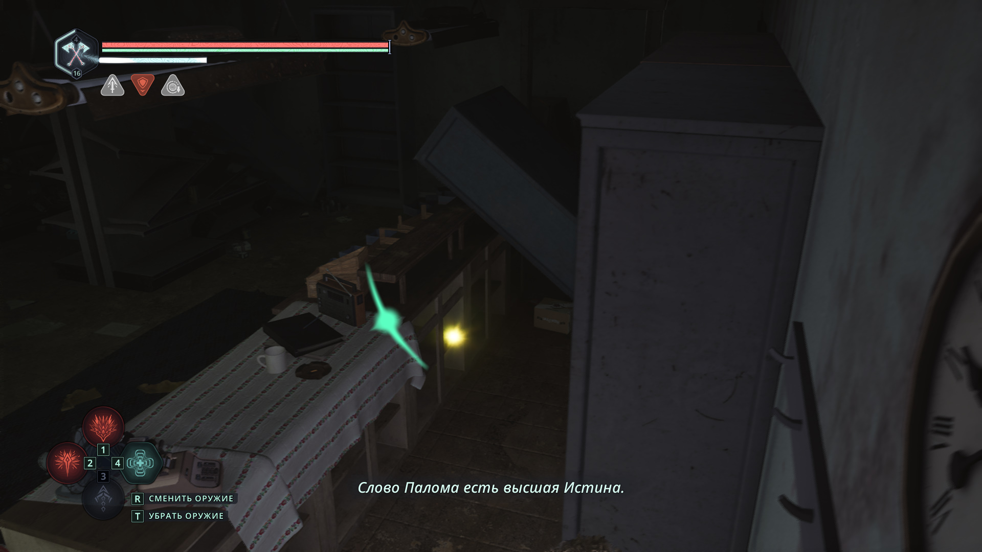 Попав внутрь, держитесь левой стороны и подберите ключ от церкви Марастана и записку «Десятина».