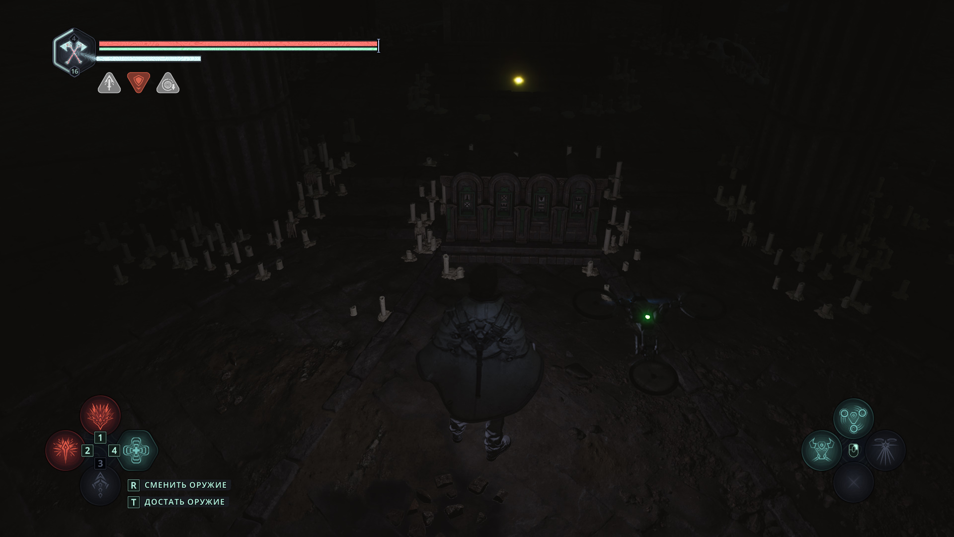 - Поднимитесь на второй этаж, пройдите в крыло с C и встаньте на C4. Бегите вниз и потяните за рычаг «глаза». Вы откроете вторую боковую дверь. Заберите лимбическую сферу «Ночная мгла (сильный)».