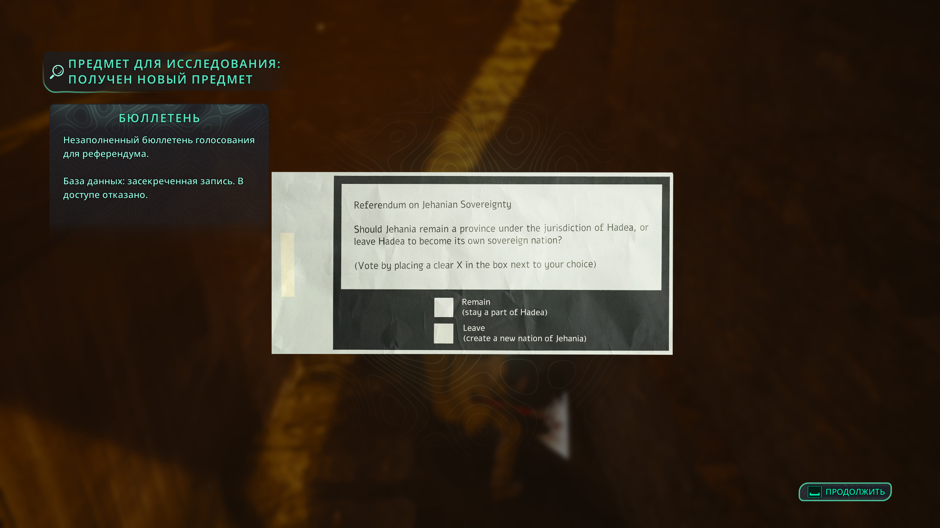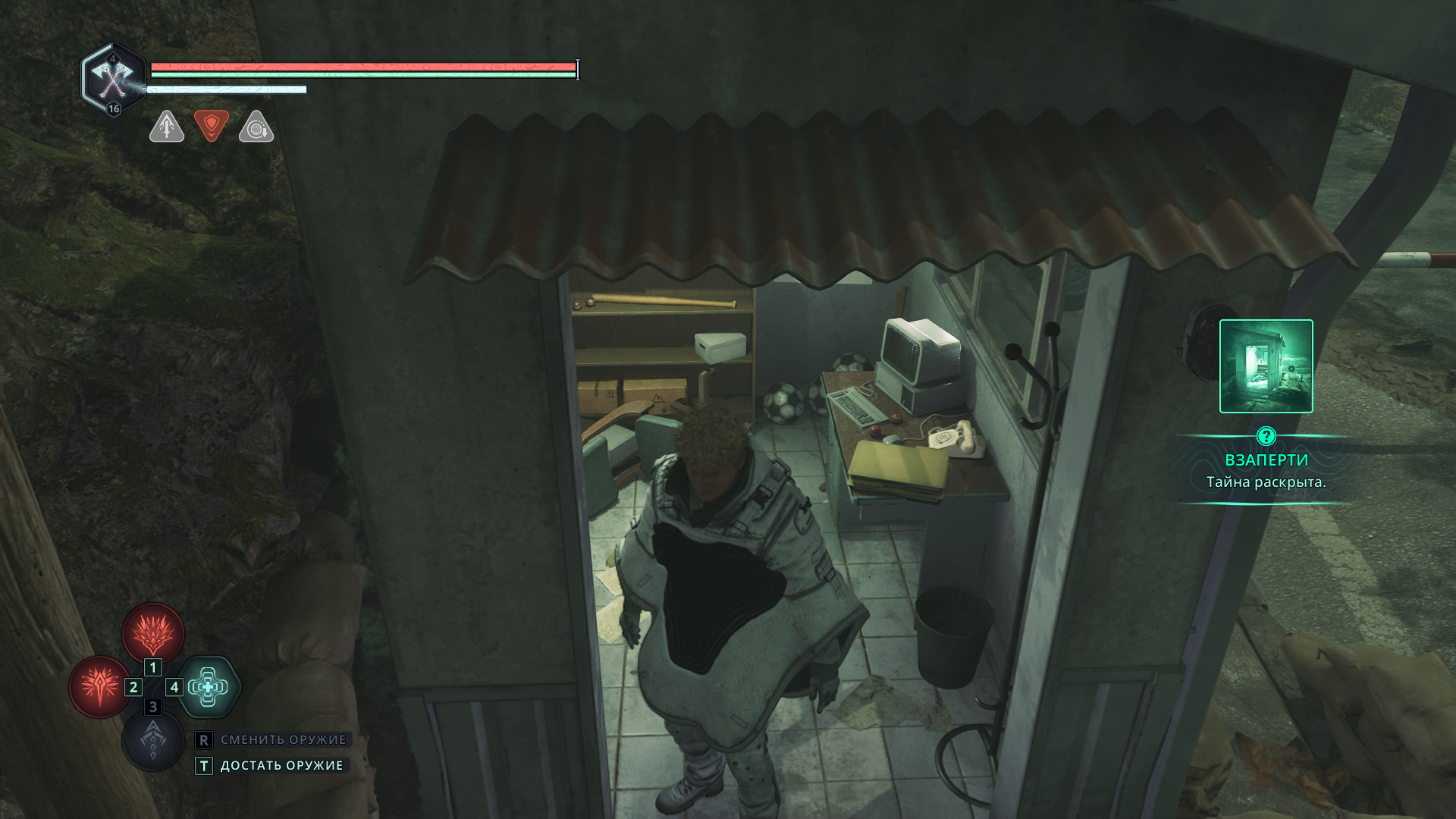 Прибыв в город, развернитесь и бегите по дороге в обратную сторону. Уничтожьте Стража временной петли и осмотрите кабинку на КПП. Вам нужен пароль от контрольно-пропускного пункта Марастана. Пока что он вам неизвестен. С этим компьютером связана тайна «Взаперти».