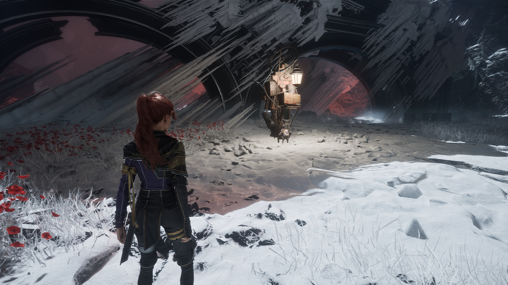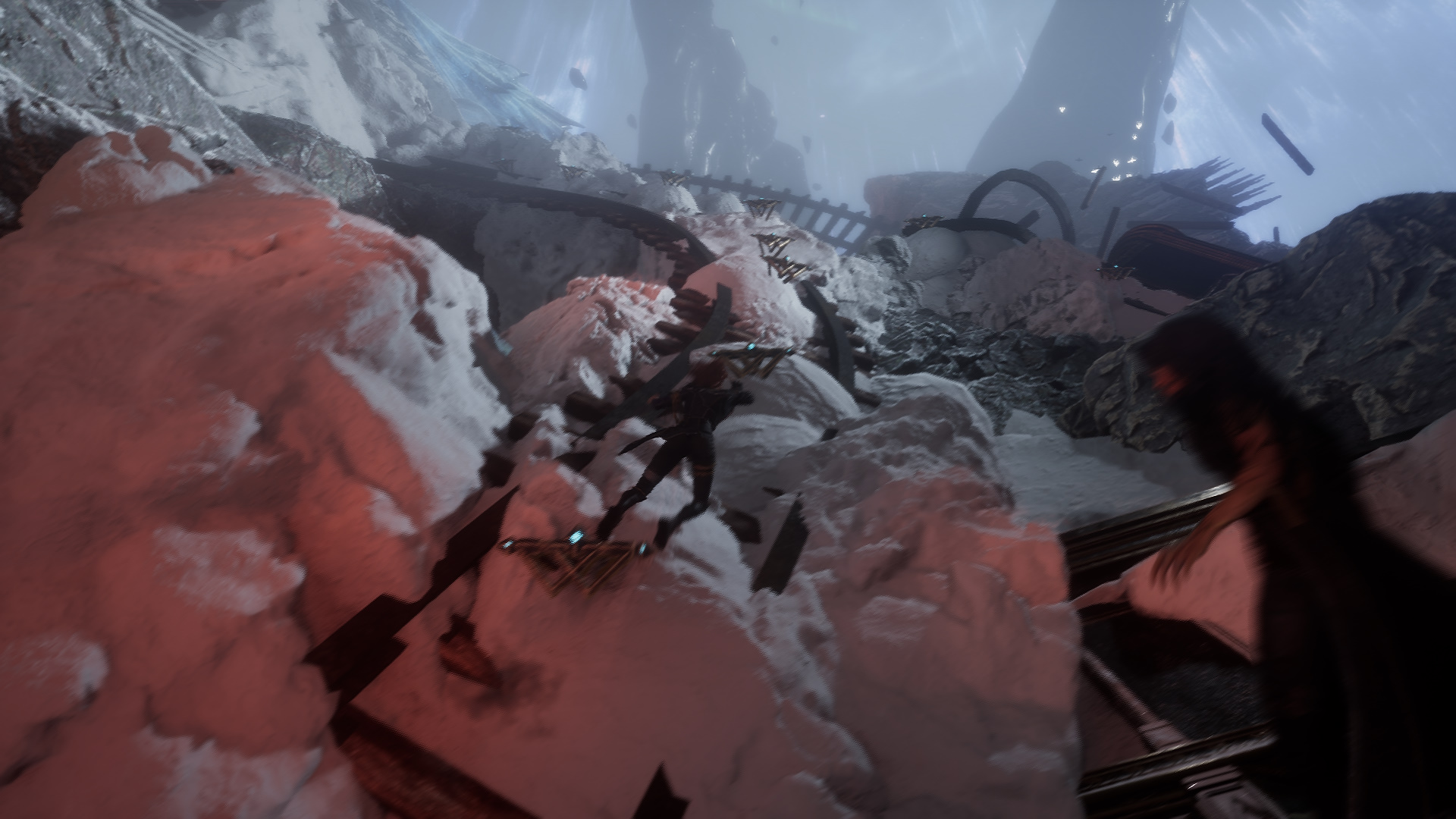 Вернитесь к торговцу у Льдистого Сердца, прыгните обратно на предыдущие вагоны, развернитесь и притянитесь к верхним вагонам. Вверху отдохните у алтаря «Обледеневший терминал».