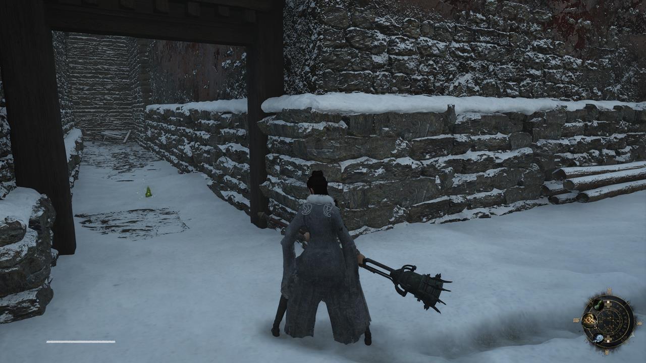 В районе с третьим столбом порчи, порождающим врагов (рядом с мостом, ведущим в Снежную крепость). Между воротами, которые вы открываете, чтобы создать короткий путь к первому столбу, и боссом Лю Чэнъэнем. На заснеженной дороге к большому подъемному мосту.