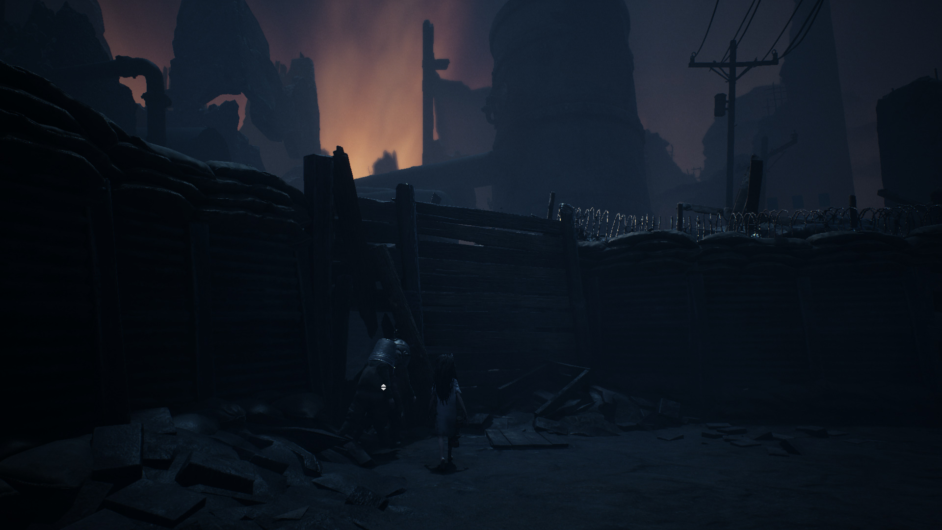 Вернитесь в предыдущую область с плакатом и спуститесь в окопы. По пути вы встретите трех солдат-самоубийц. После третьего держитесь правой стороны — ищите стену с отверстием, через которое можно пролезть. Сделайте это и между артиллерийскими снарядами ищите маску в форме мины. Это место находится прямо перед солдатом, который взрывает гранату.