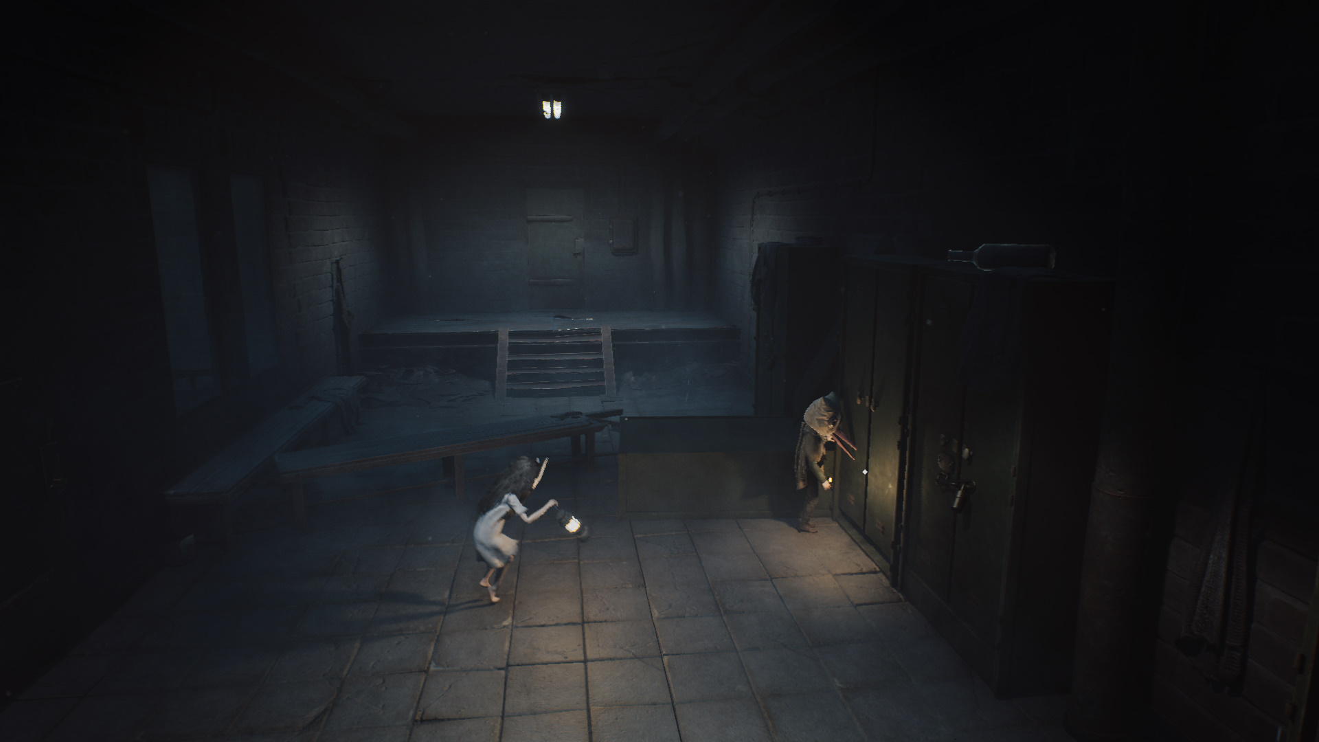 Когда попадете в раздевалку со шкафчиками. Откройте шкафчик напротив двери и заберитесь внутрь. Это путь в скрытую комнату. Под раковиной лежит маска.