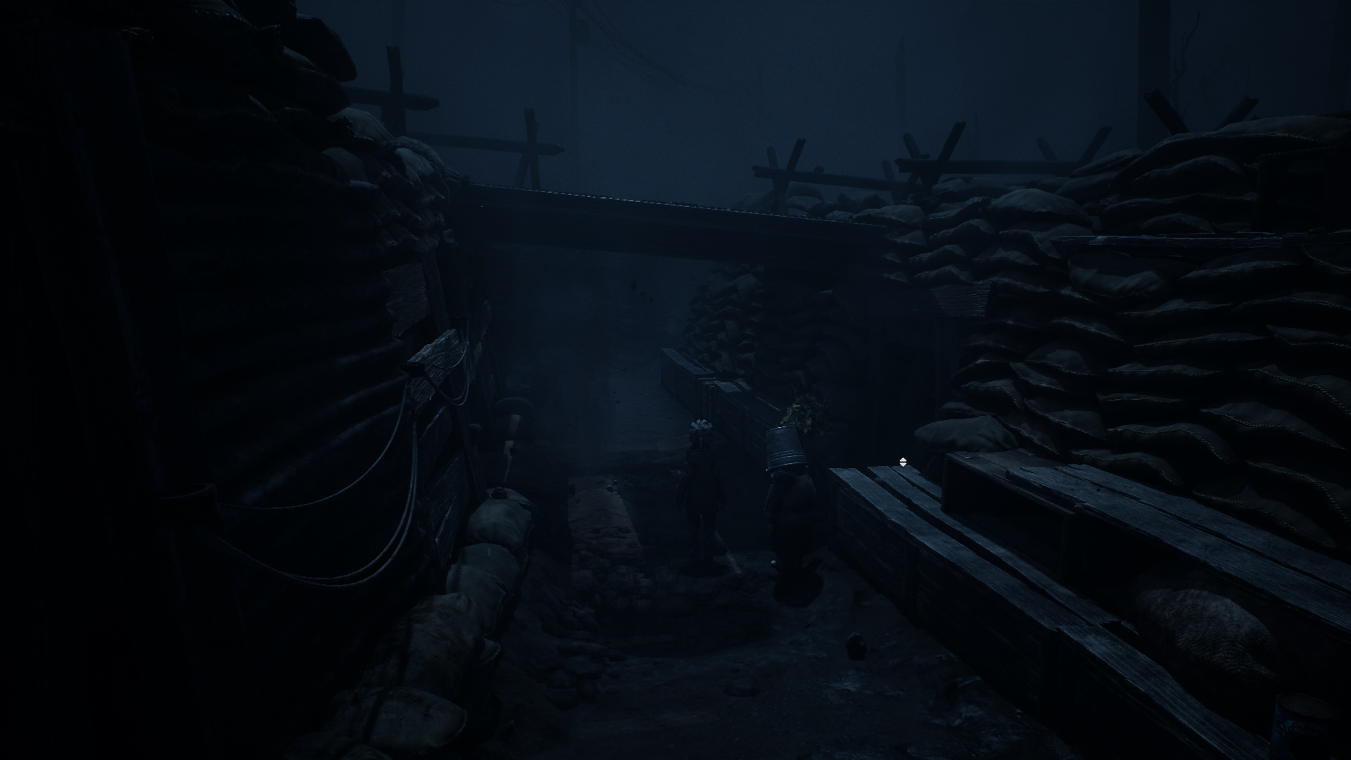 Продолжите движение через траншеи, пока не встретите солдата, который подорвет гранату (чтобы не погибнуть, отбегите назад). После взрыва пройдите вперед и найдите слева проем, над которым стоит крупный враг. Протиснитесь в проем, чтобы найти алтарь и маску. Маска лежит перед алтарем со статуями. Посетите это место до того, как подняться по лестнице! Вы нашли все статуи ранее, а это место вы посещаете для того, чтобы увидеть все статуи и получить достижение «За упокой».