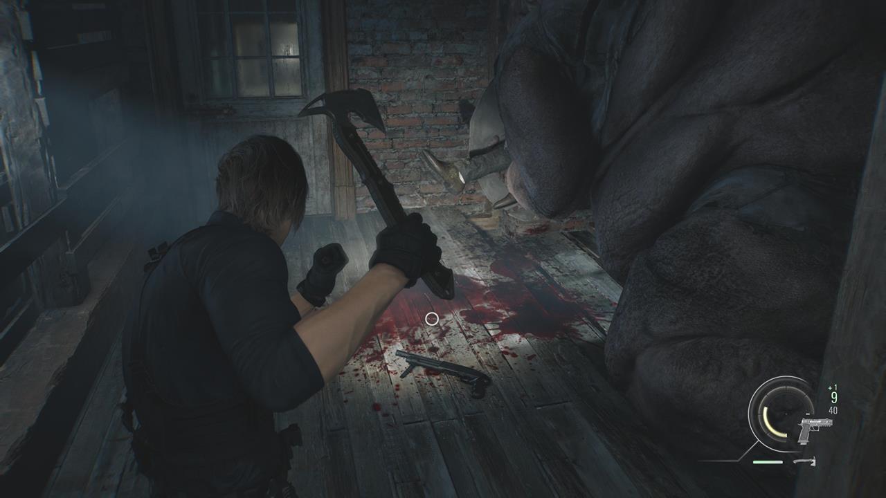 - Леон может парировать атаки врагов и добивать зомби, когда те стоят на коленях. Долговечность топора уменьшается при использовании, нужно периодически затачивать лезвие.