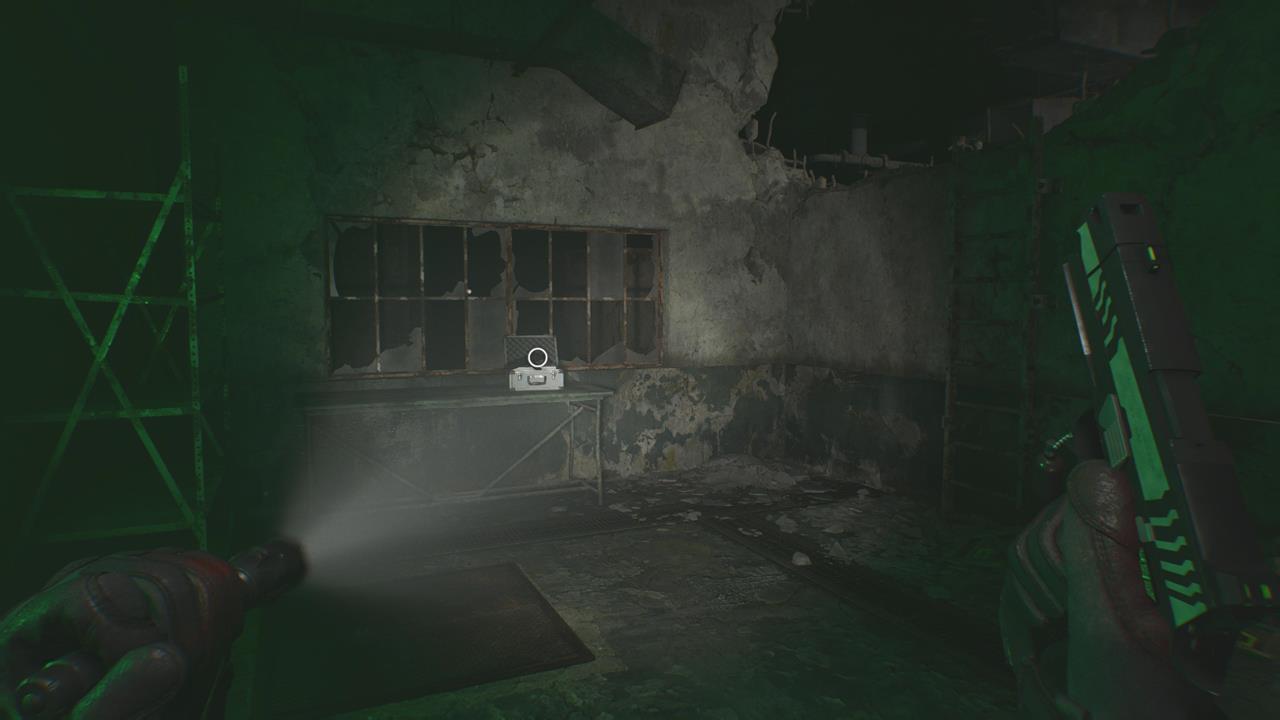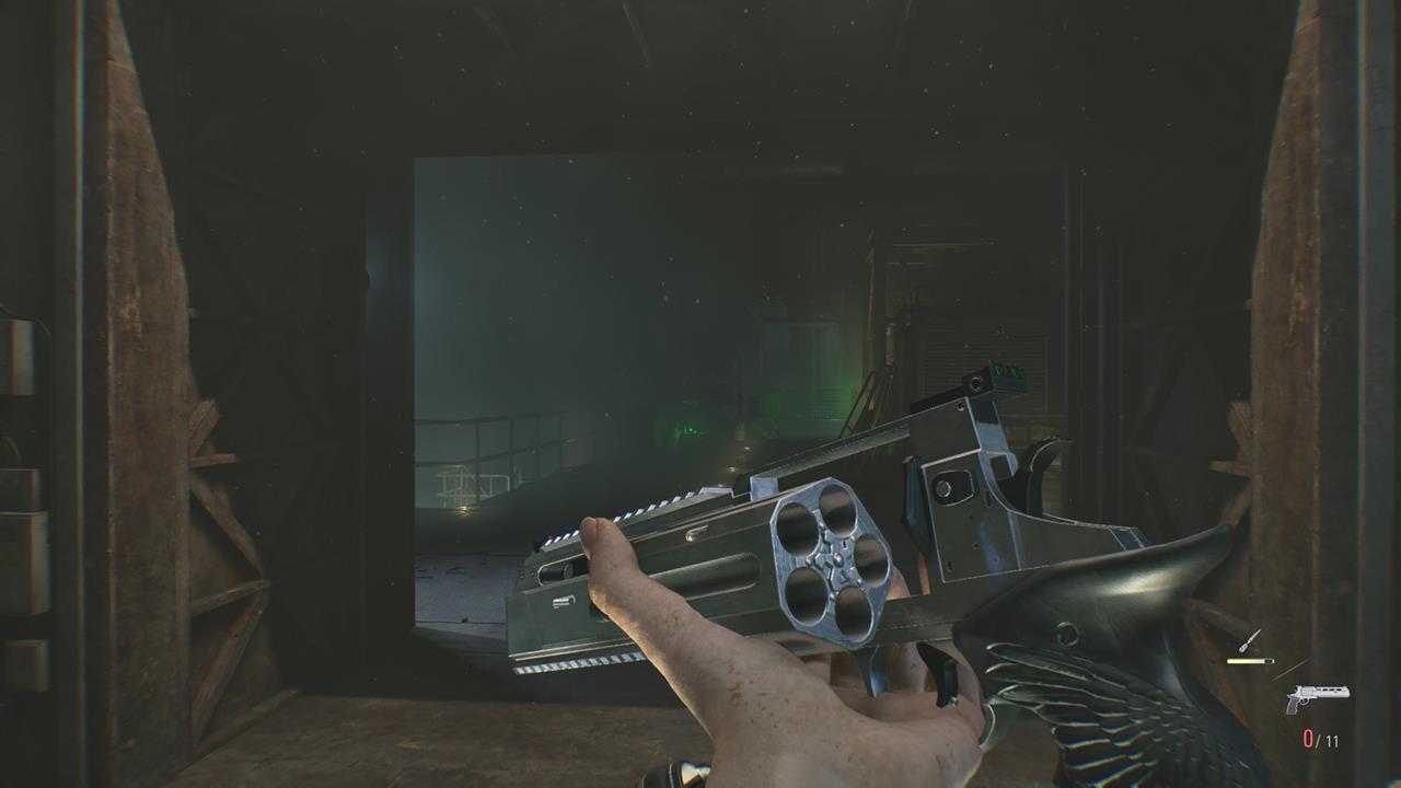 - Восточная парковка под Раккун-Сити, внутри сарая за частично затопленными машинами.