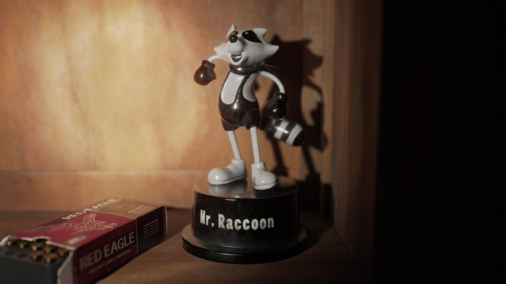 Еще один Енот, которого можно также найти в эпизодах игры за Грейс, но мы его пропустили. Статуэтка находится в мини-кухне рядом с офисом на втором этаже.